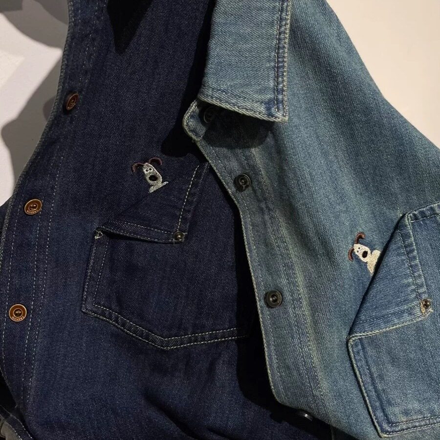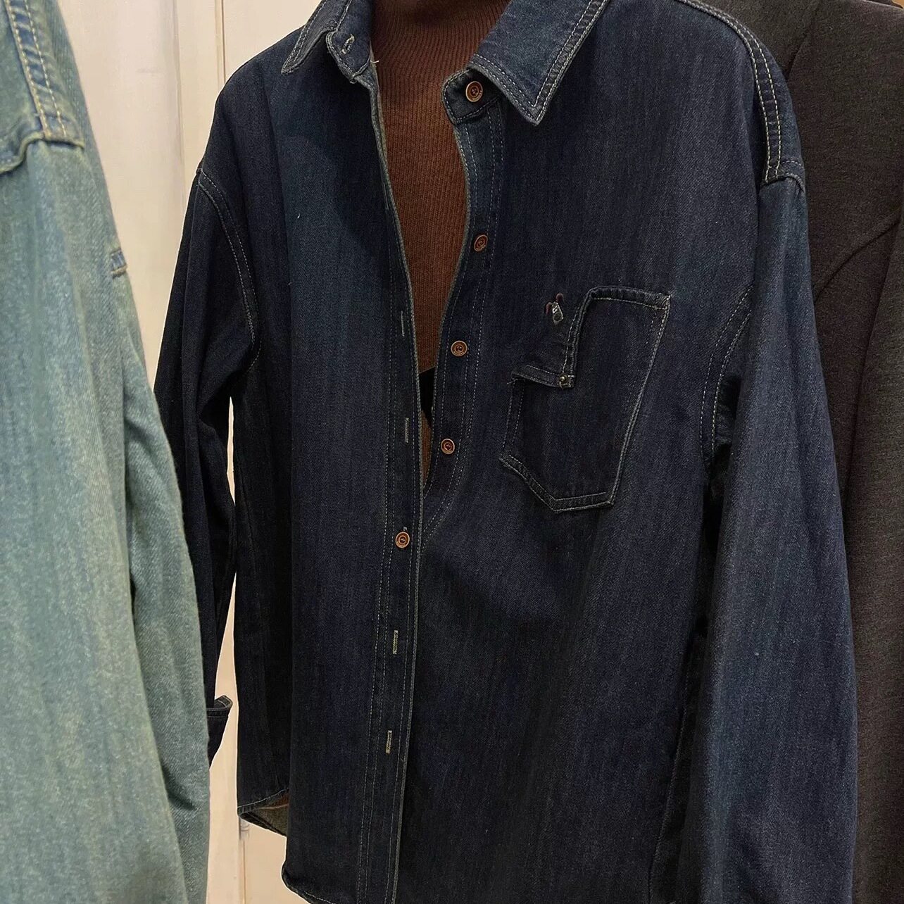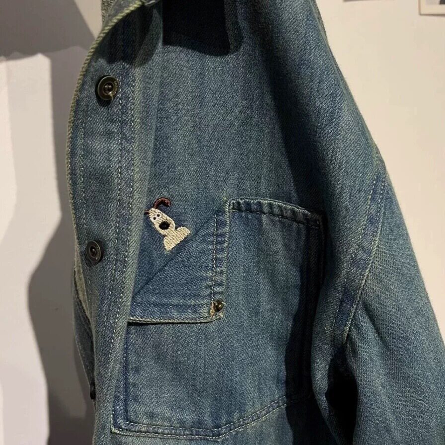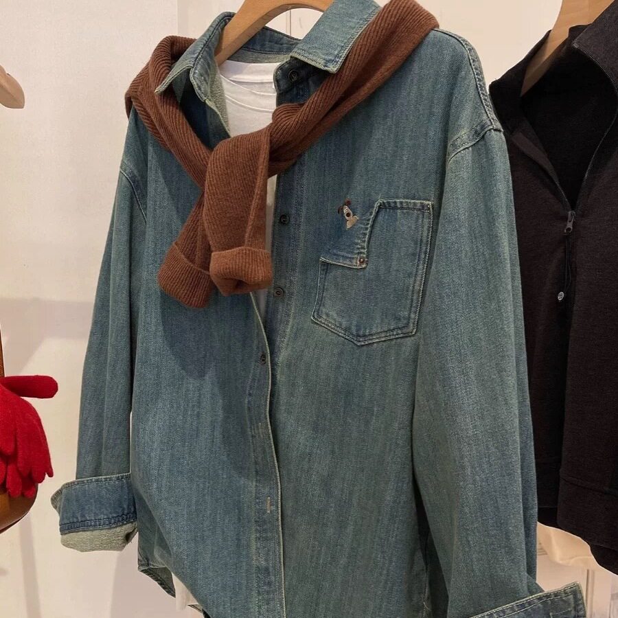 复古翻领蓝色牛仔衬衫女2025秋冬季新款刺绣宽松百搭叠穿上衣外套