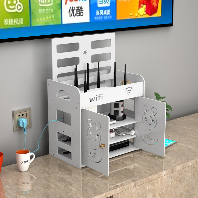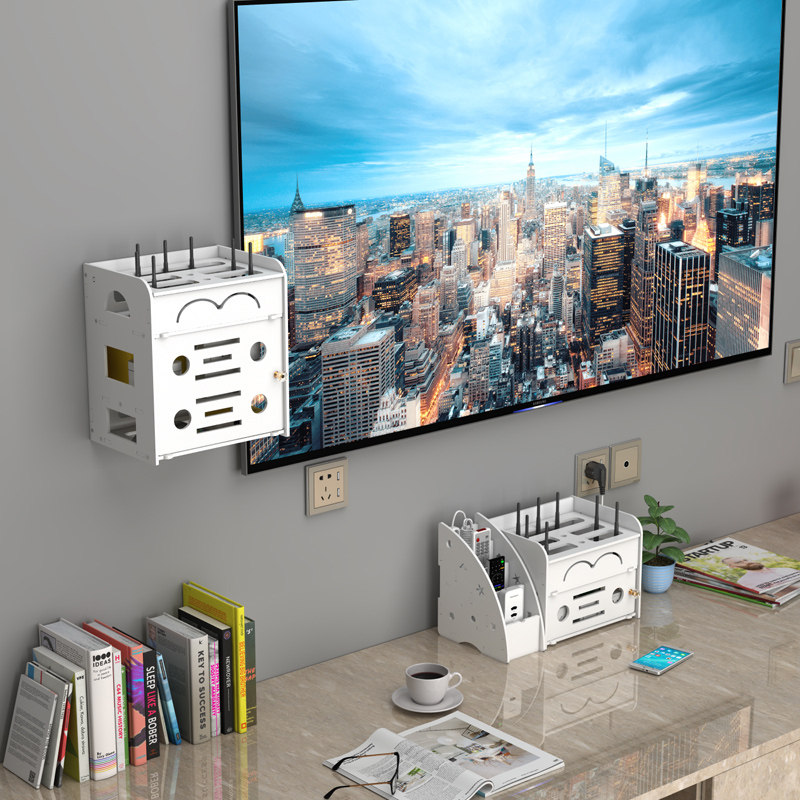 路由器收纳盒无线猫电线插线板整理收纳架墙上机顶盒遥控器置物架