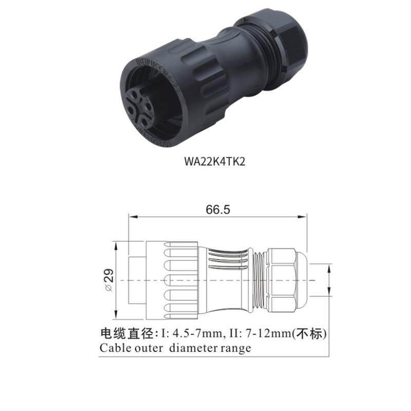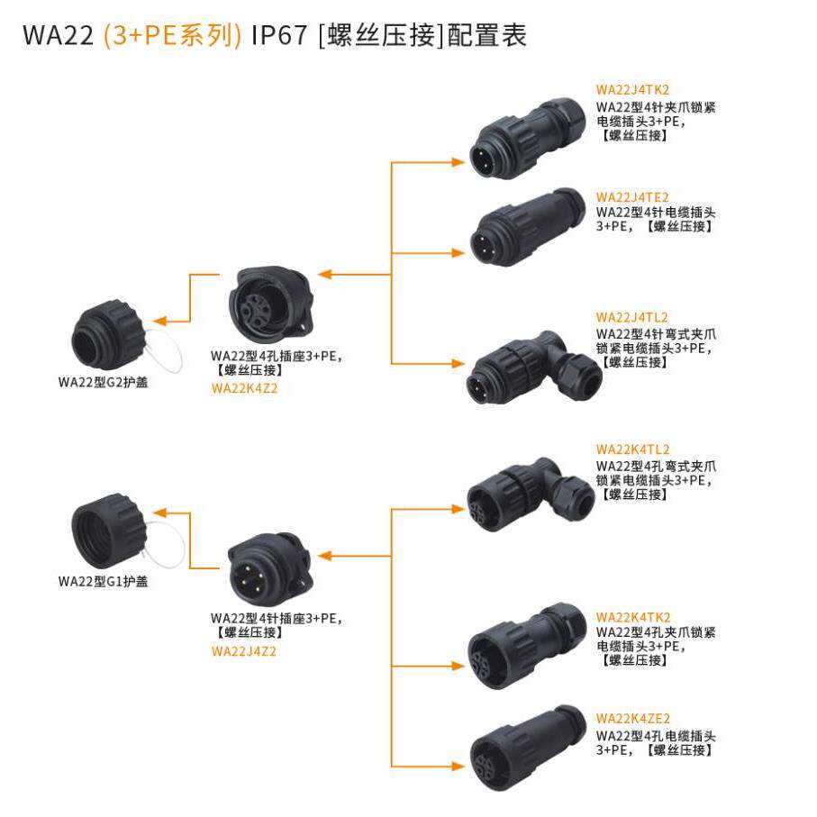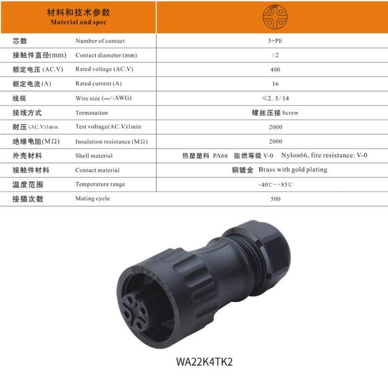 WEIPU威浦WA22型4孔夹爪锁紧电缆插头WA22K4TK2螺丝压接防水IP67