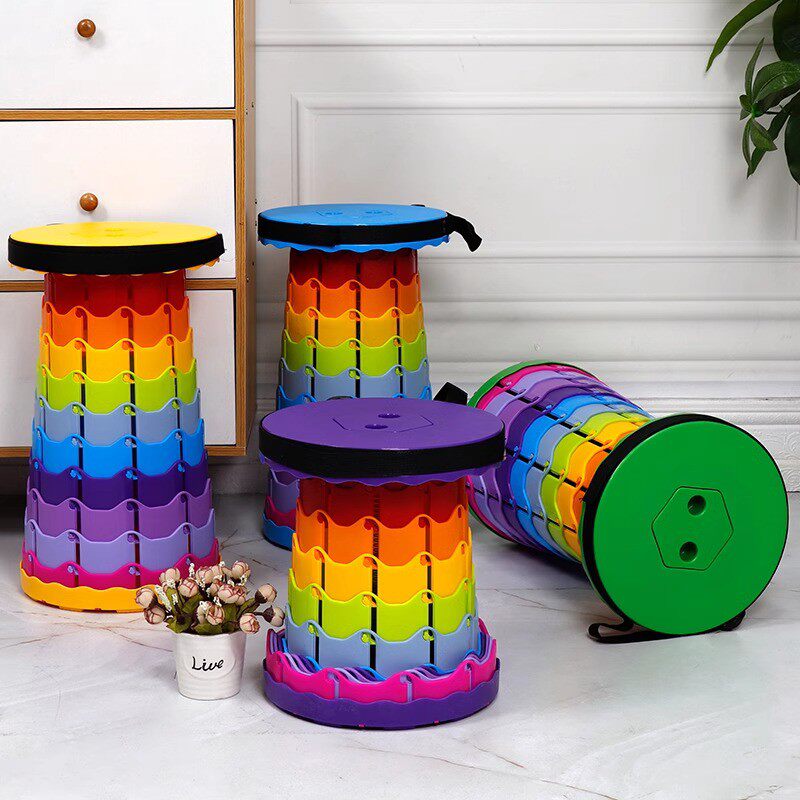 折叠塑料凳子家用圆凳伸缩凳可调节收缩小板凳便携钓鱼凳户外椅子