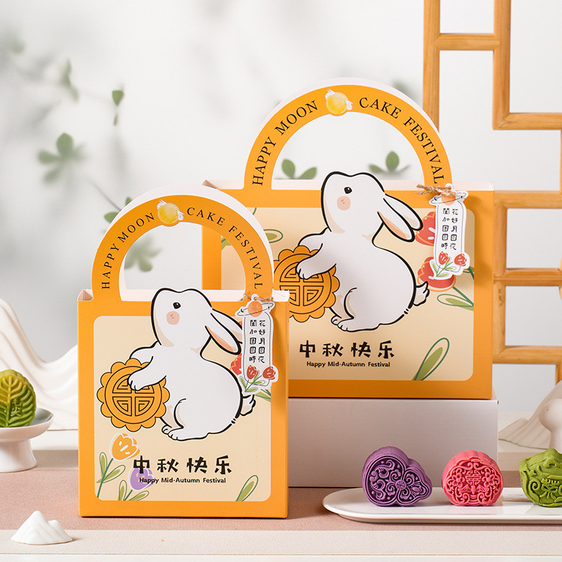 中秋快乐可爱兔4/6粒冰皮流心月饼包装盒礼盒手提蛋黄酥盒子