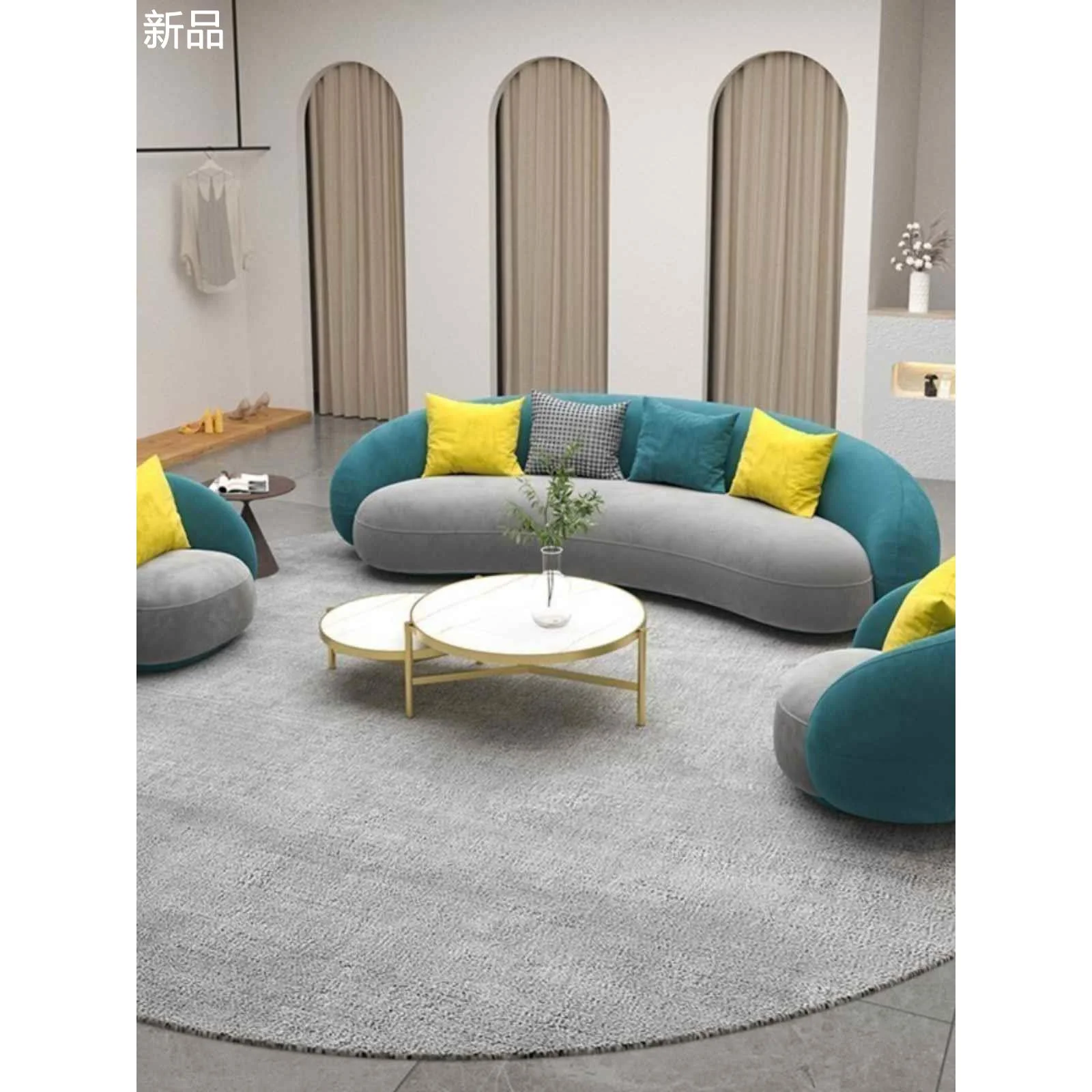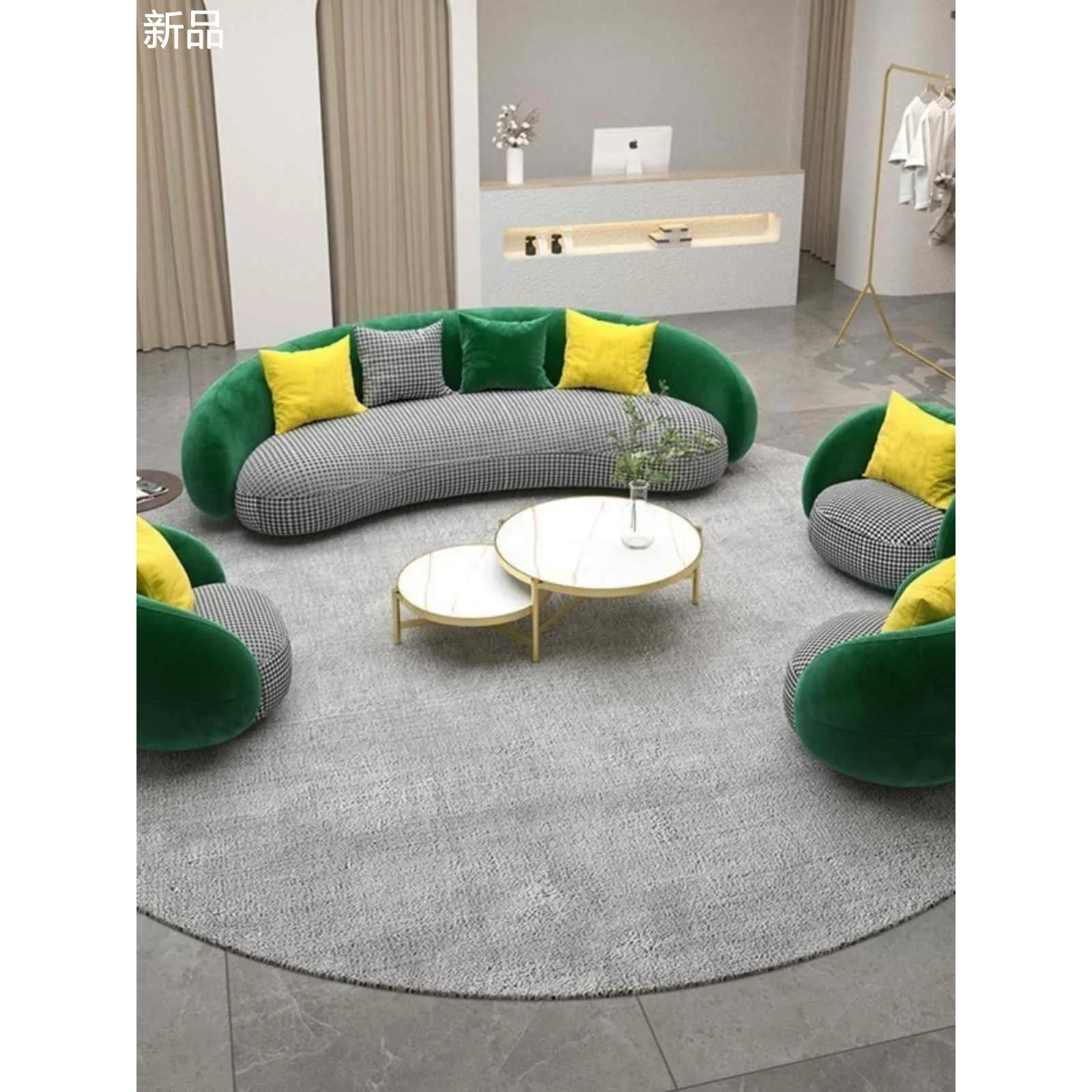 北欧网红布艺弧形沙发简约现代服装店接待沙发办公沙发茶几组合套