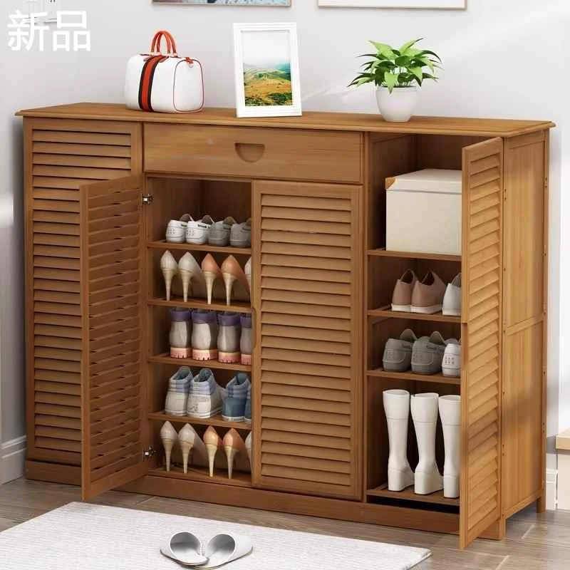 鞋柜家用门口室内新款2024爆款楼道加高竹子楠竹储物柜大容量鞋架