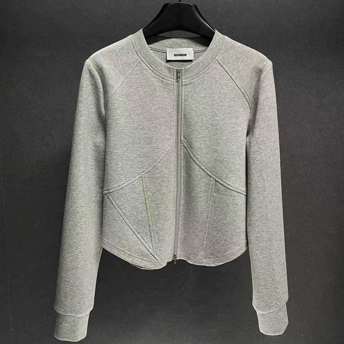 灰色拉链圆领长袖开衫卫衣女秋冬季新款高档年轻减龄遮肉显瘦上衣