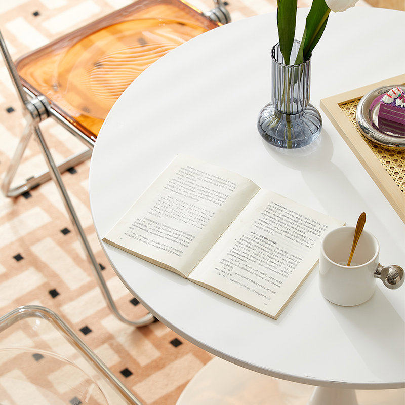 简约休闲餐桌白色北欧咖啡桌奶茶洽谈桌子ins郁金香阳台小圆