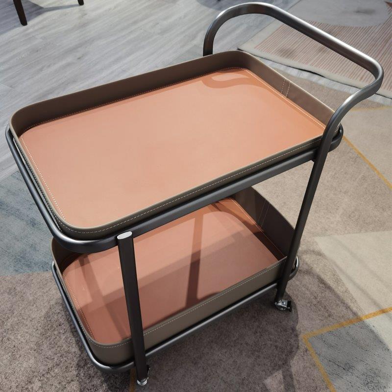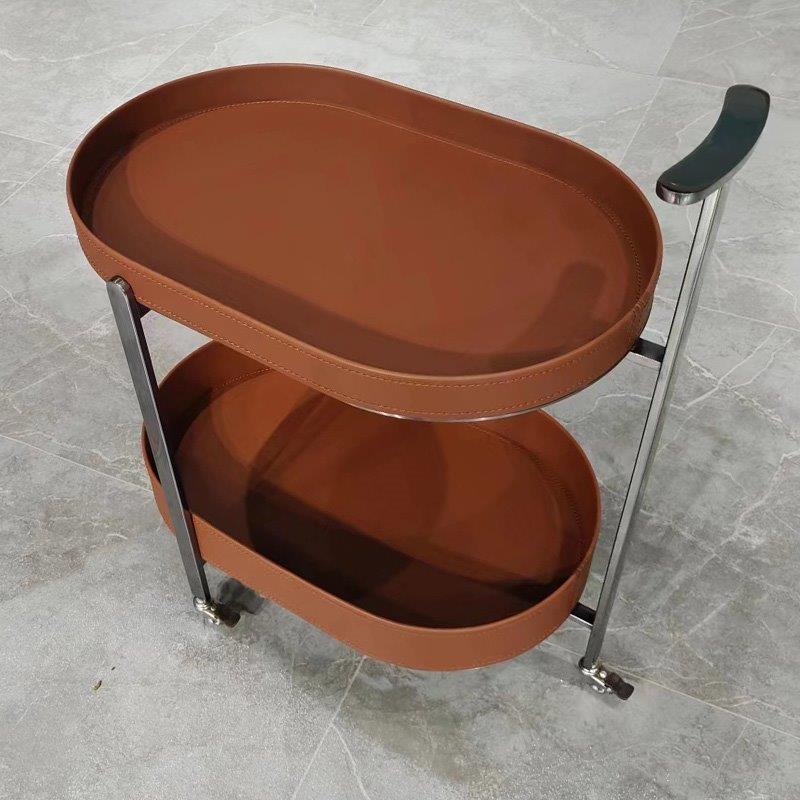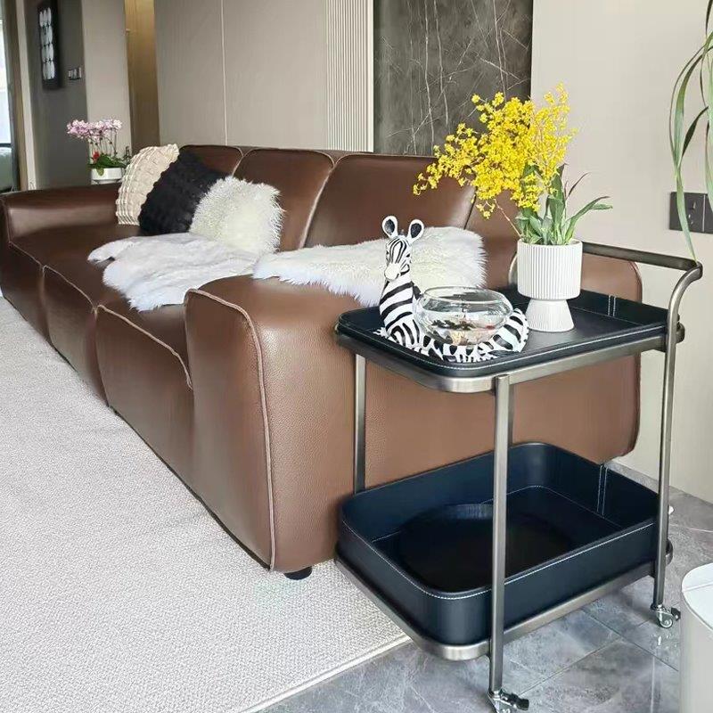 轻奢马鞍皮移动沙发边几小推车茶几客厅家用角几床头柜带轮置