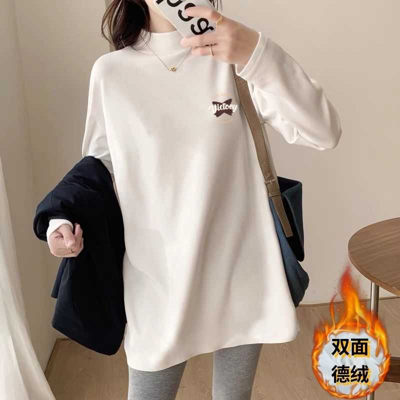 双面德绒半高领打底衫女冬季新款内搭外穿宽松中长款洋气保暖上衣