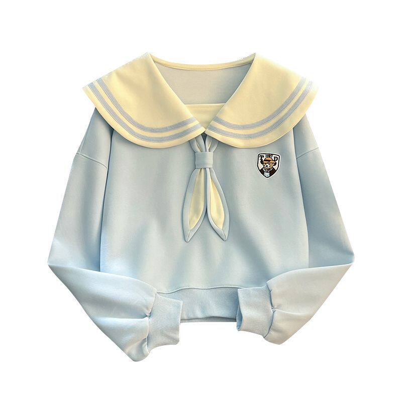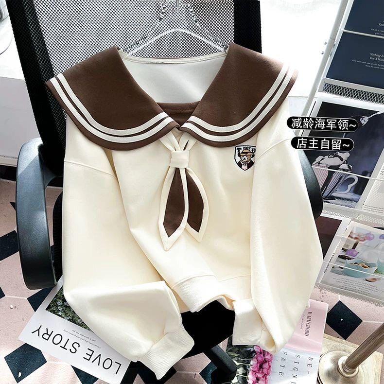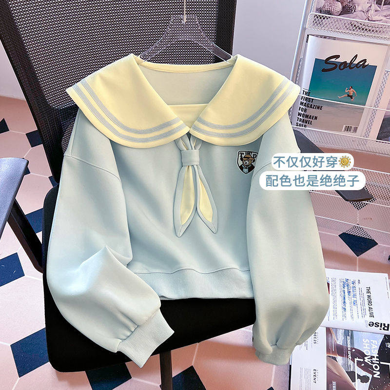 13-15岁大童少女孩春秋装衣服棉质初中学生16长袖T恤海军领卫衣19