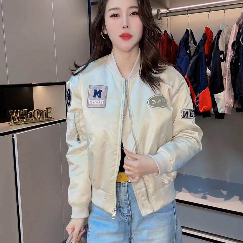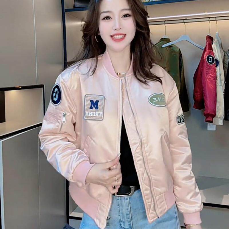 夹棉美式棒球服外套女短款2025年春秋新款爆款加棉女装飞行员夹克
