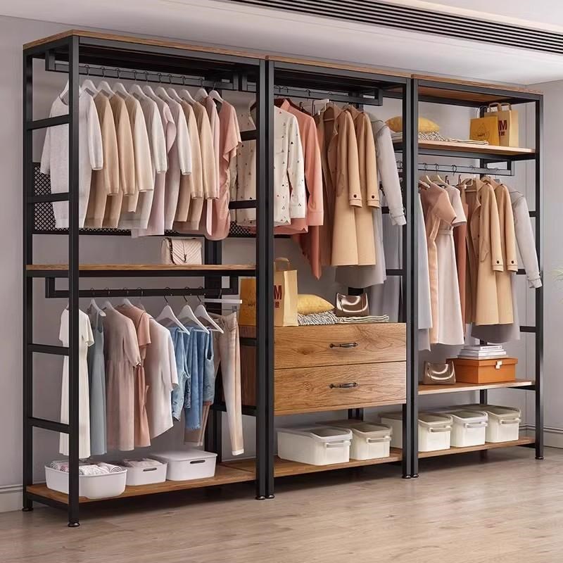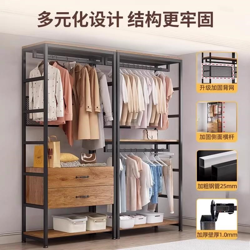 开放式金属衣柜卧室落地组合挂衣架家用网红定制步入式衣帽间架子