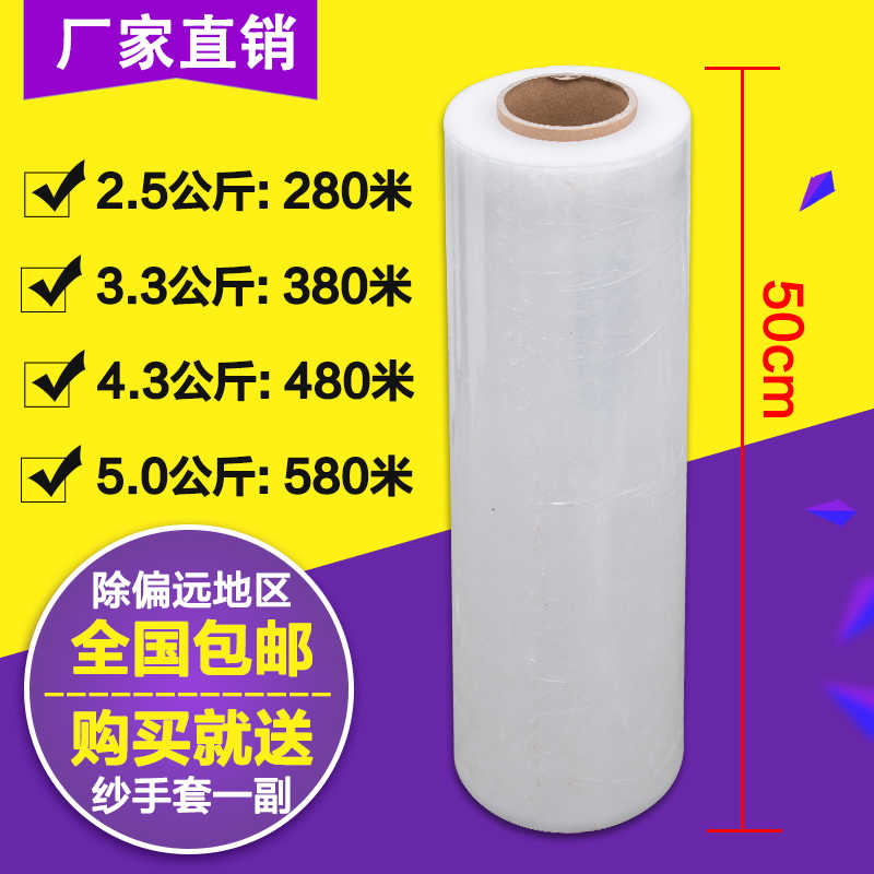 PE缠绕膜50cm宽拉伸膜小卷工业包装膜大卷打包膜保鲜膜塑料薄围膜