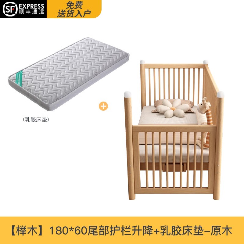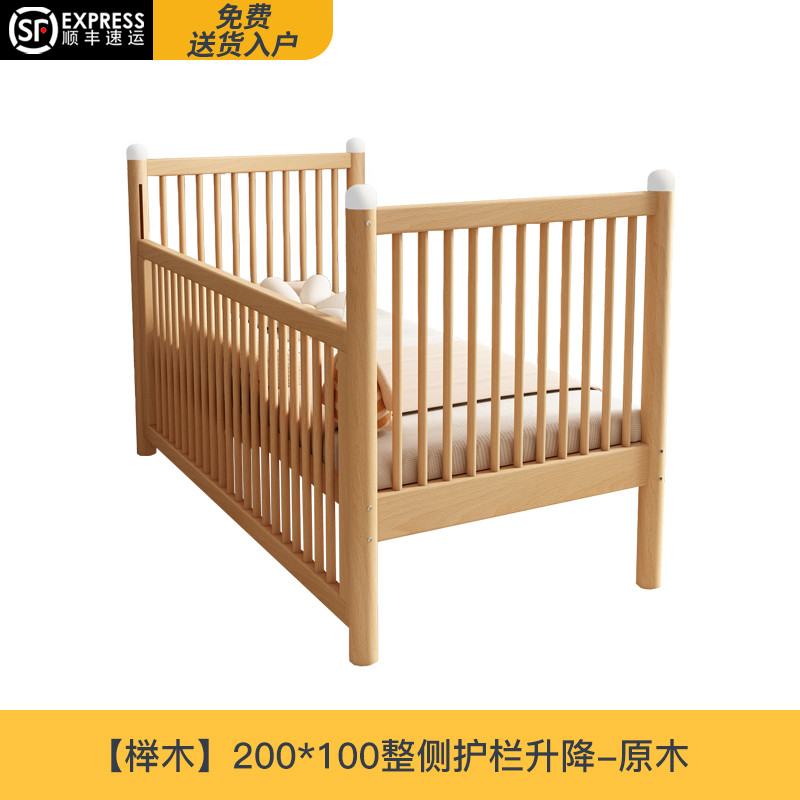 边榉木婴儿床加宽平接大床儿童拼接床男女宝宝小床可升降高护新款