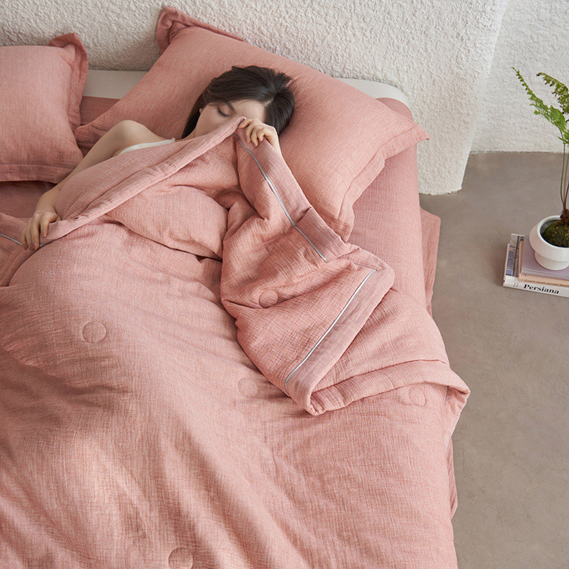酥软透气丨轻薄双层纱日式纯色空调被全棉可机夏被夏凉被洗
