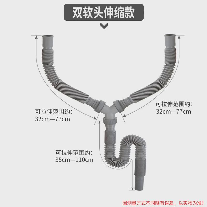 新款双面盆下水管伸缩台盆y型三通管厨房水槽下水器二合一排