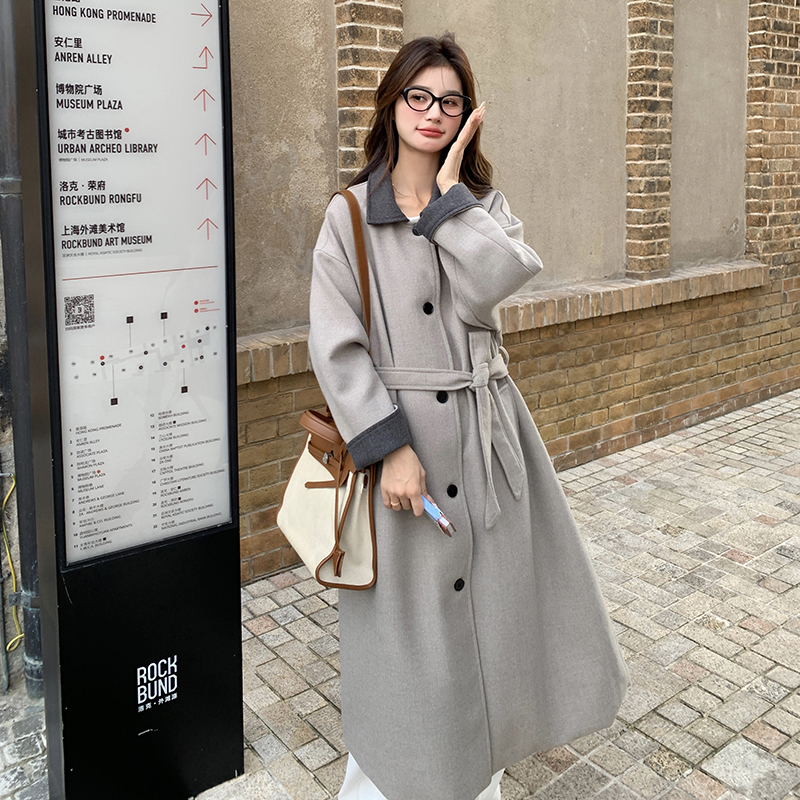 灰色高级感毛呢大衣女长款赫本风羽绒内胆呢子外套