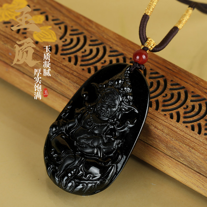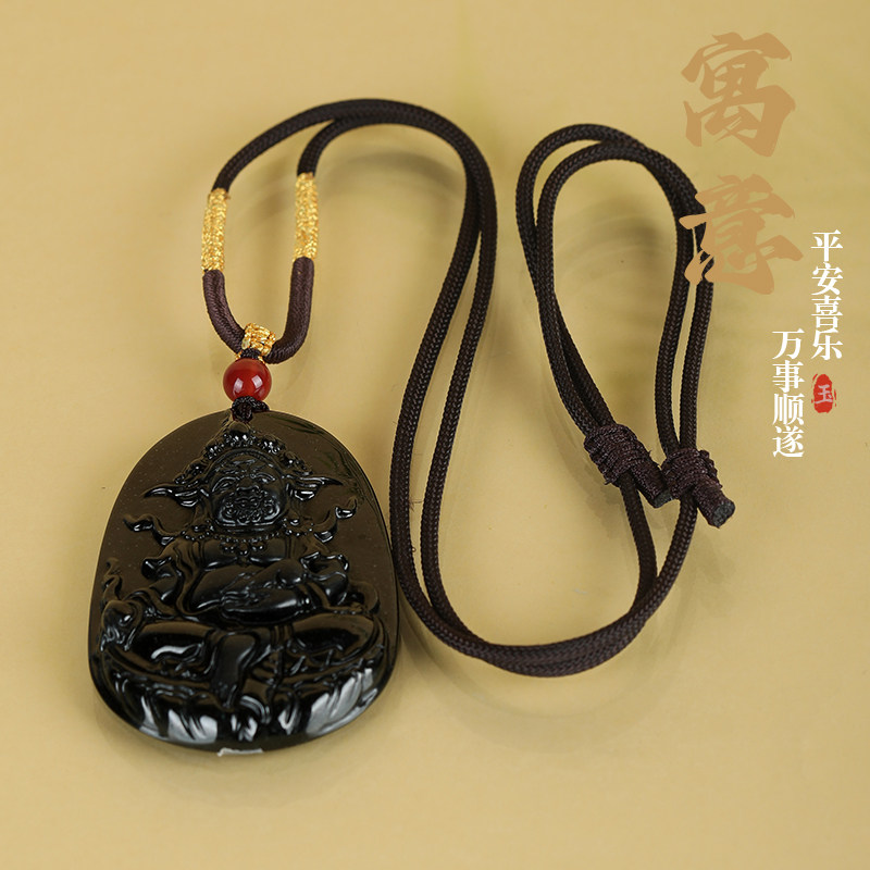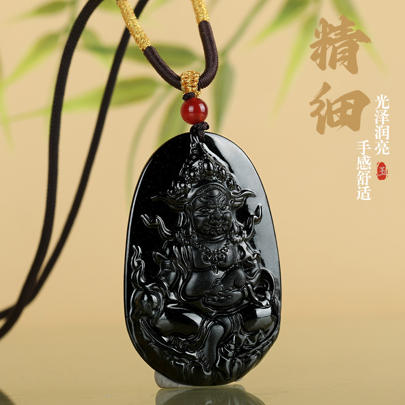 唐今玉天然a货翡翠墨翠黄财神玉石吊坠冰种挂件玉坠男女款项链玉