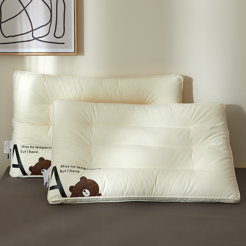 A类全棉小熊低枕枕头枕芯护颈家用儿童学生助眠成人单人填充舒适