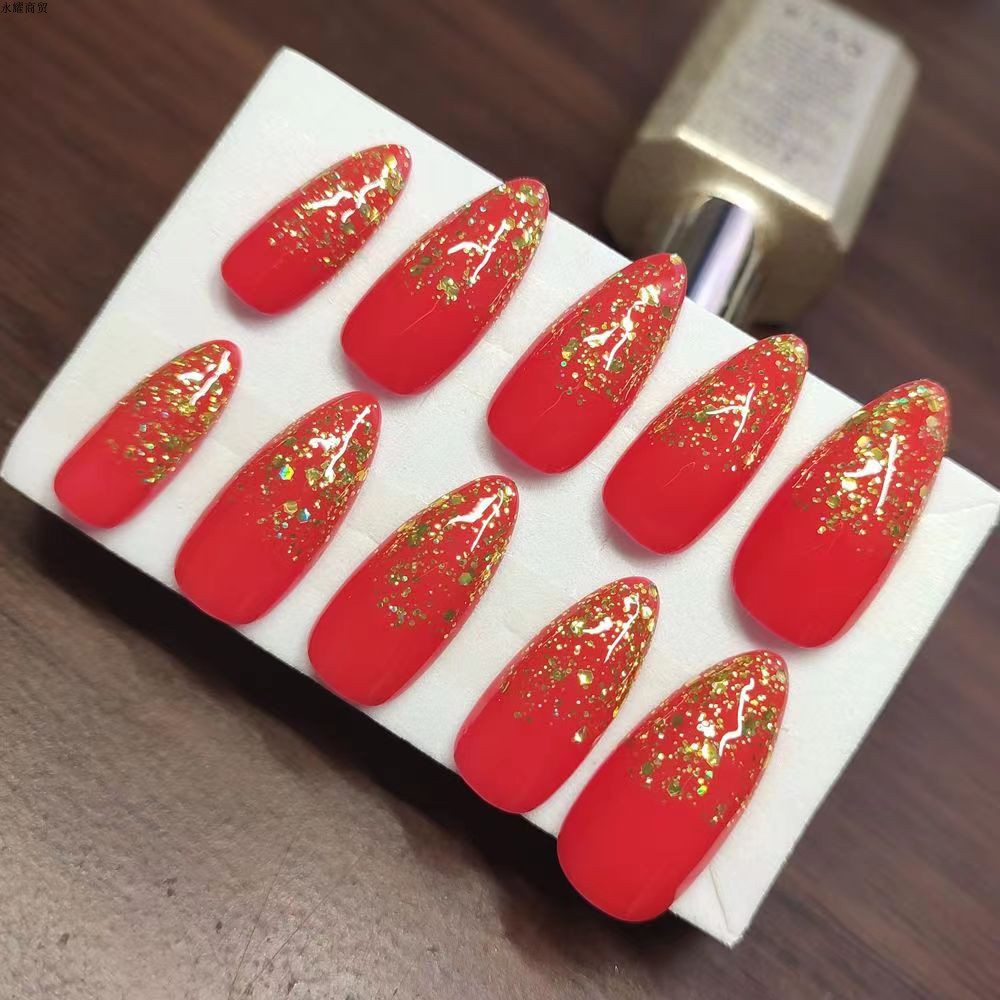 美甲贴片大红色中式长款穿戴甲可拆卸成品显白手工光疗假指甲贴片