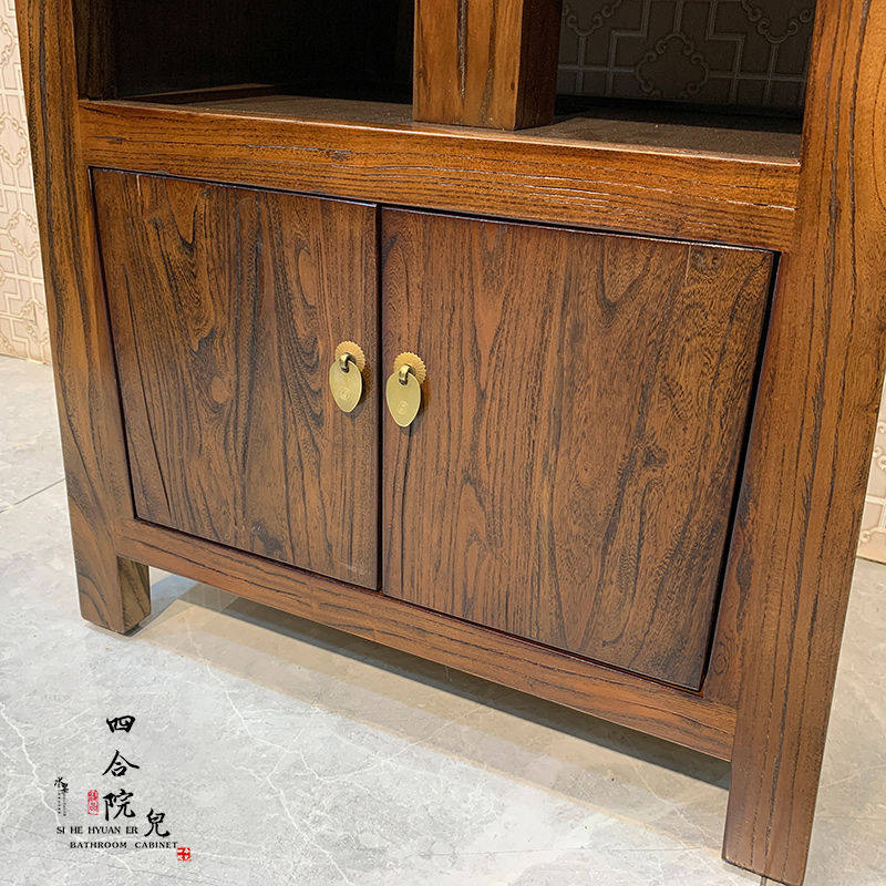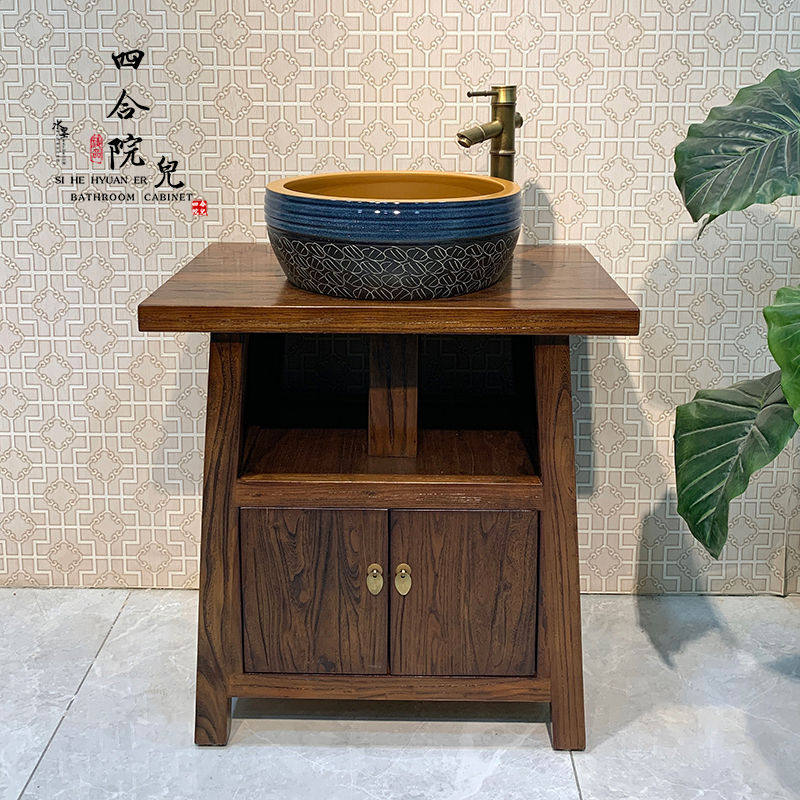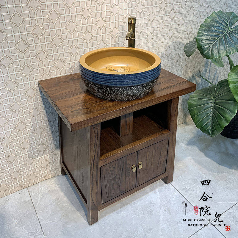 老榆木中式浴室柜组合实木小户型卫生间落地式复古洗手台盆柜