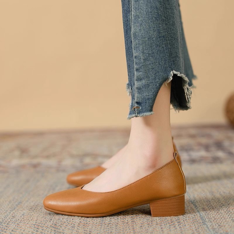 牛皮跟高2.5厘米和3.5厘米和5厘米 新款V口方头百搭网红奶奶单鞋