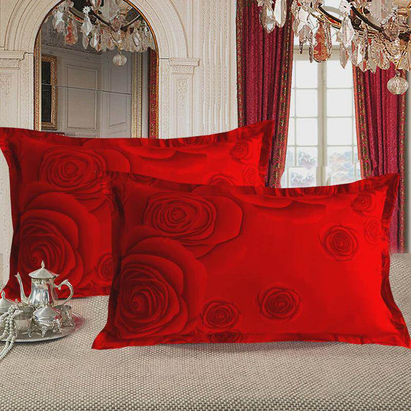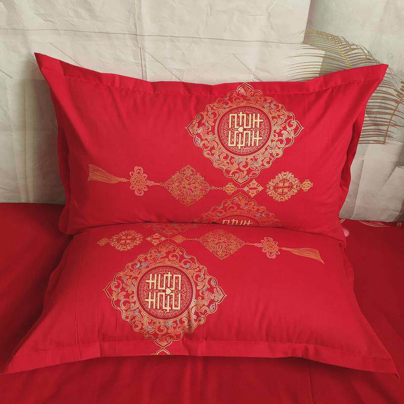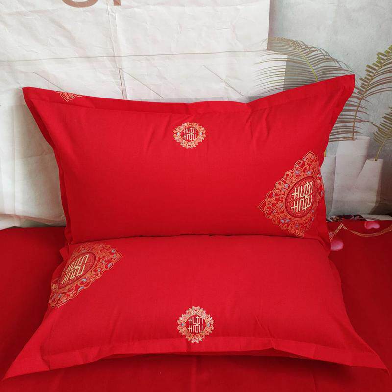 大红色枕套结婚一对厂家拉链式婚庆纯棉印花单双人枕头纯棉直发