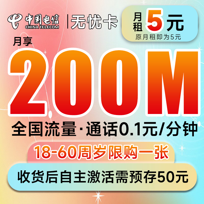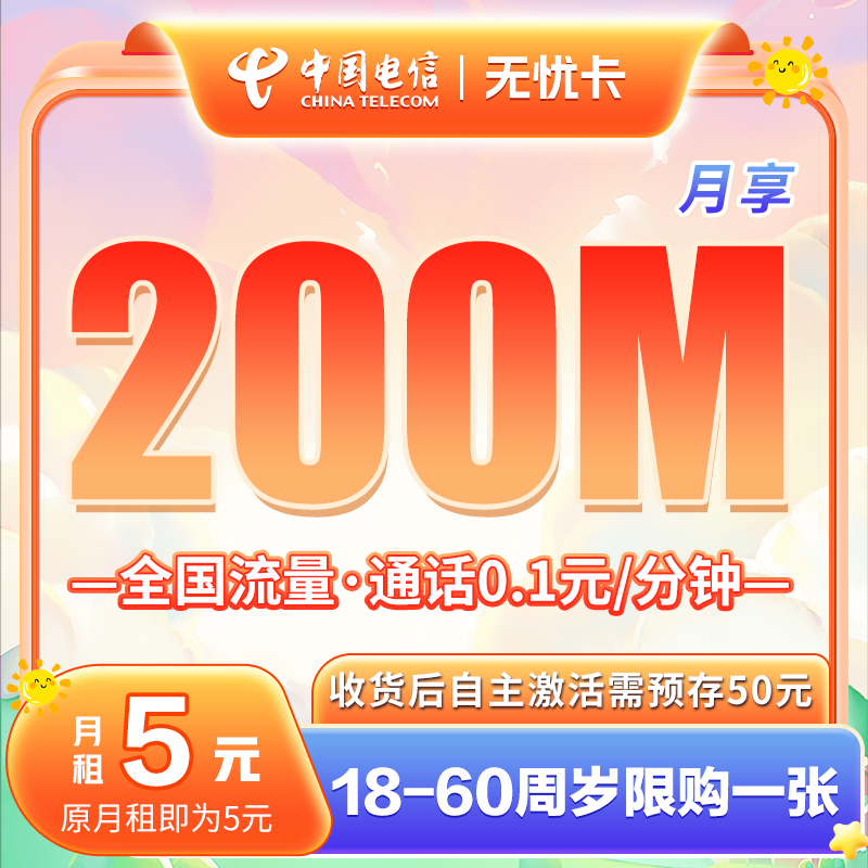 电信电话卡5元低月租无忧卡全国流量手机卡手表电话卡老人流量卡