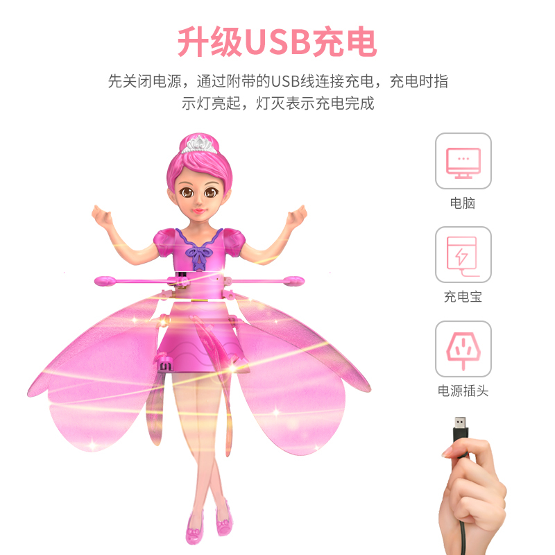 会飞小仙女智能遥控娃娃飞天球儿童感应公主玩具小女孩人机飞机