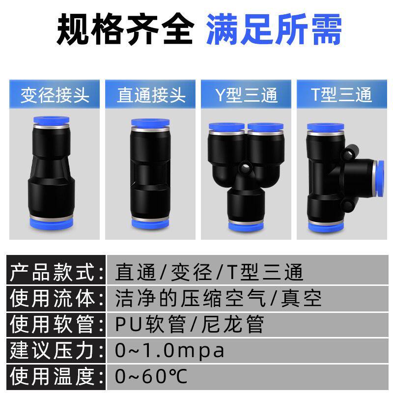 气管快速接头PE三通PU直通PG变径高压气动快插汽接头6 8 10 12mm