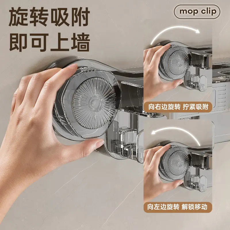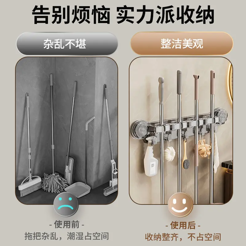 挂壁拖把夹吸盘免打孔挂钩置物架浴室卫生间强力拖布扫把固定挂架