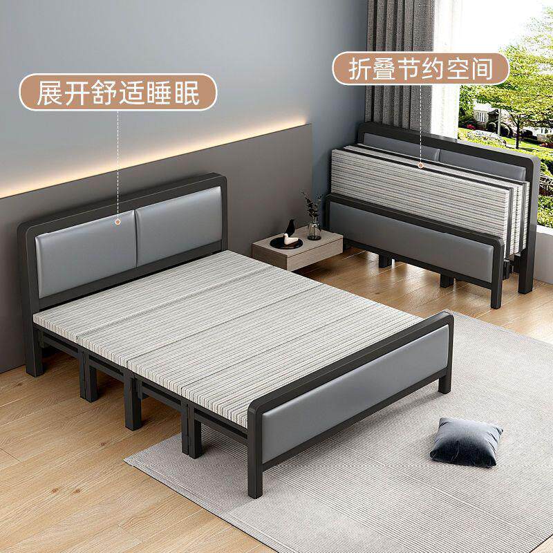四折折叠床双人床家用简易木床铁床单人床出租屋板床午休床铁艺床