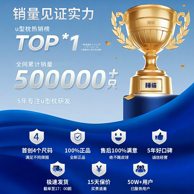 TripPal睡猫u型枕头枕脖子护颈枕飞机旅行便携坐车睡觉颈椎u形枕