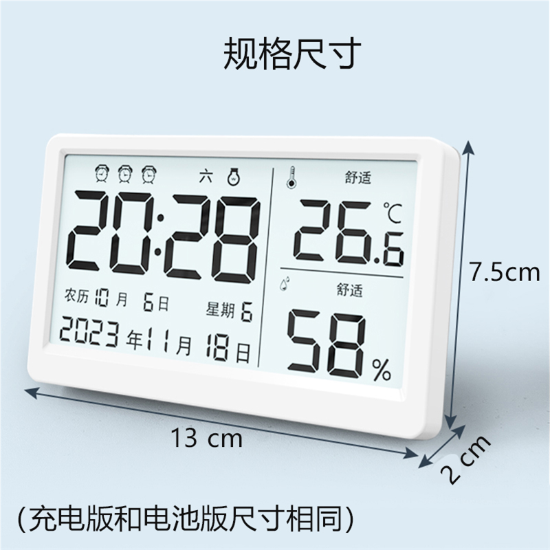 温度计家用室内电子温湿度计儿童房充电款夜光万年历自动背光夜光