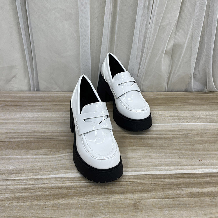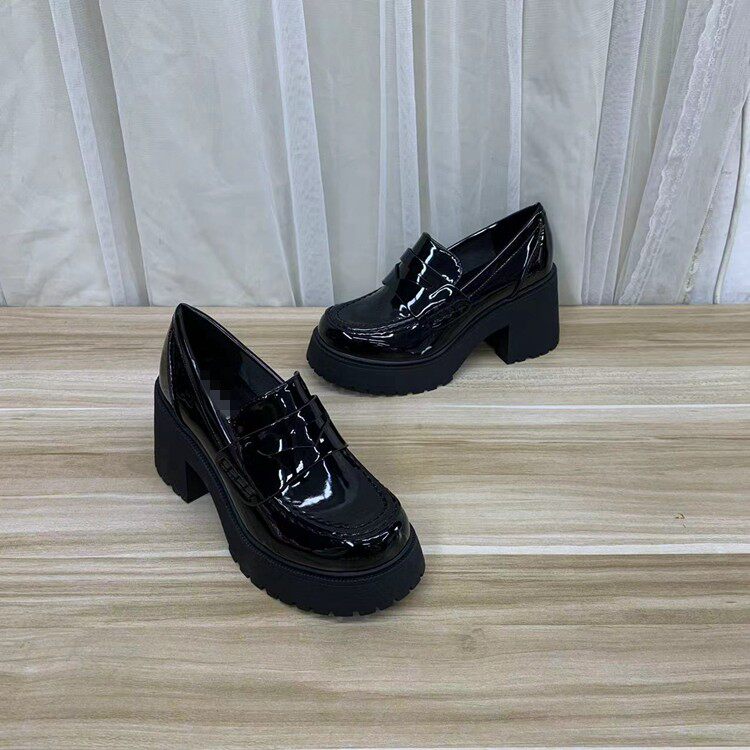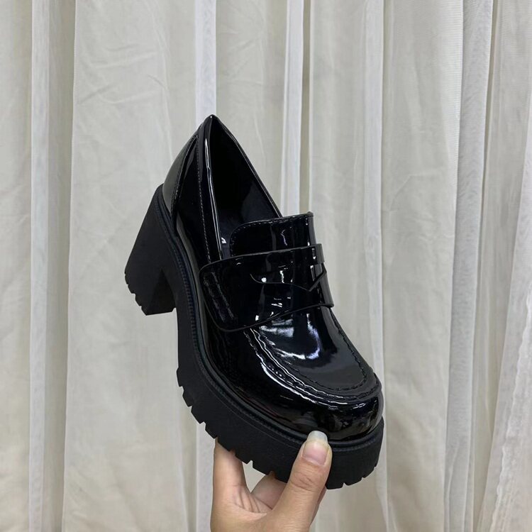 外贸原单女鞋圆头纯色简约百搭粗高跟防水台单鞋乐福鞋