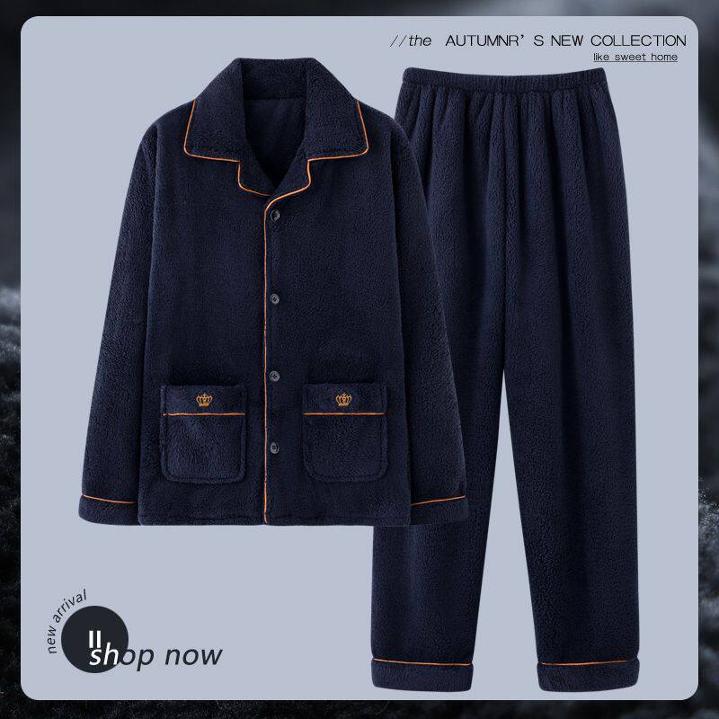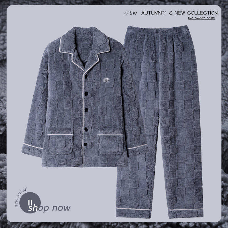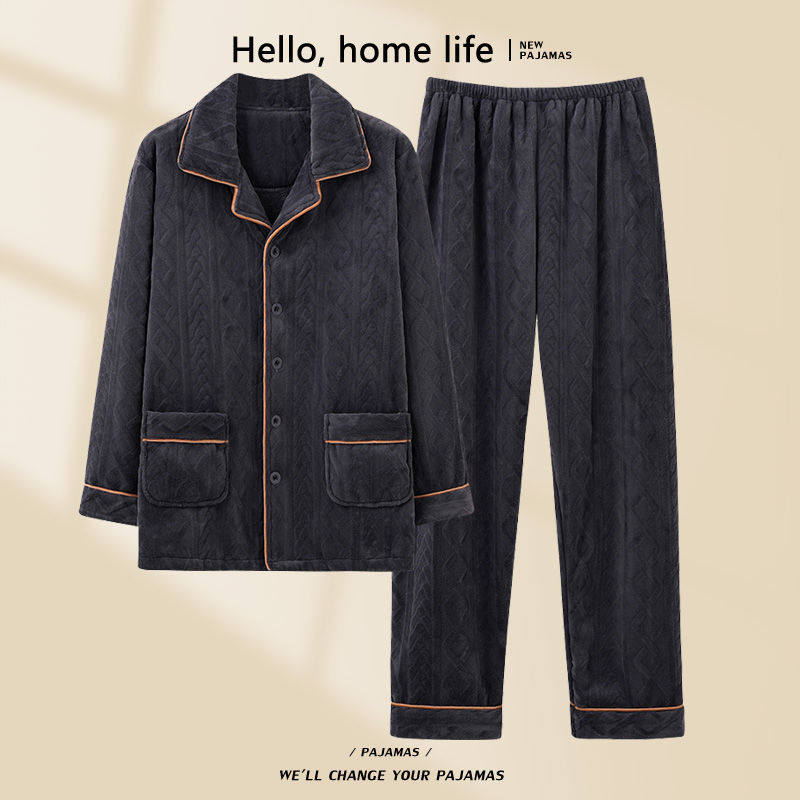 美梦睡衣男冬季加厚加绒珊瑚绒保暖法兰绒秋冬款大码男家居服套装