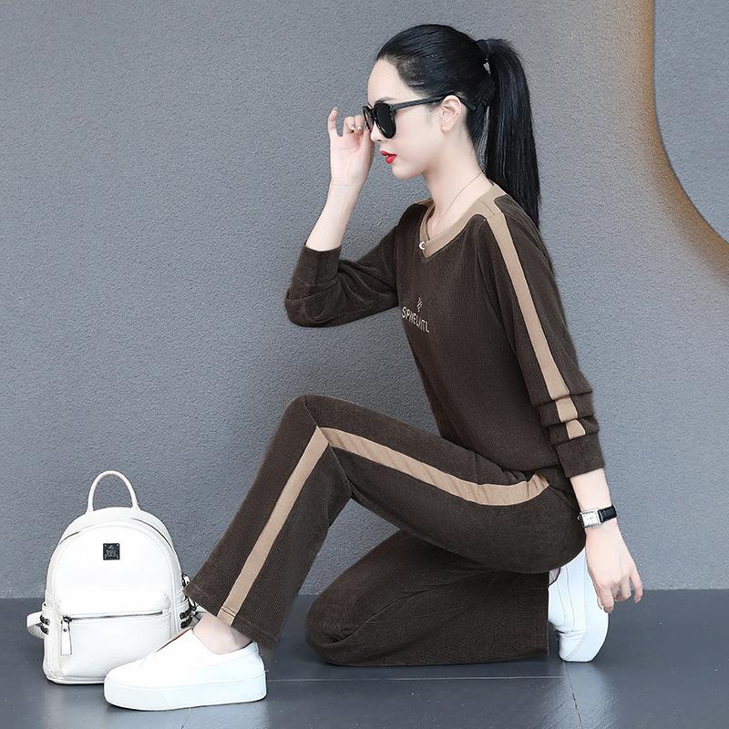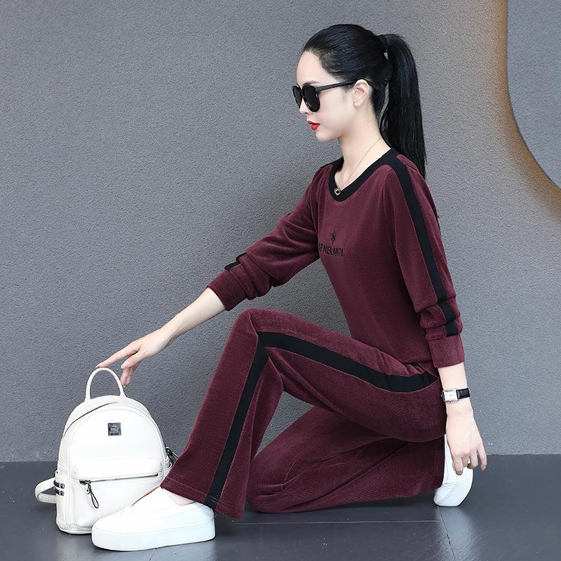 秋新款时尚洋气休闲运动卫服套装女季春8472422秋衣阔士腿裤两件