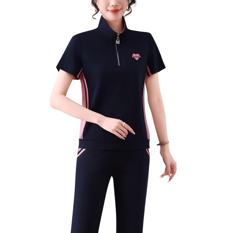 休运闲套装女夏季动薄款跑短袖新款冰丝90620227大码步妈妈夏装两