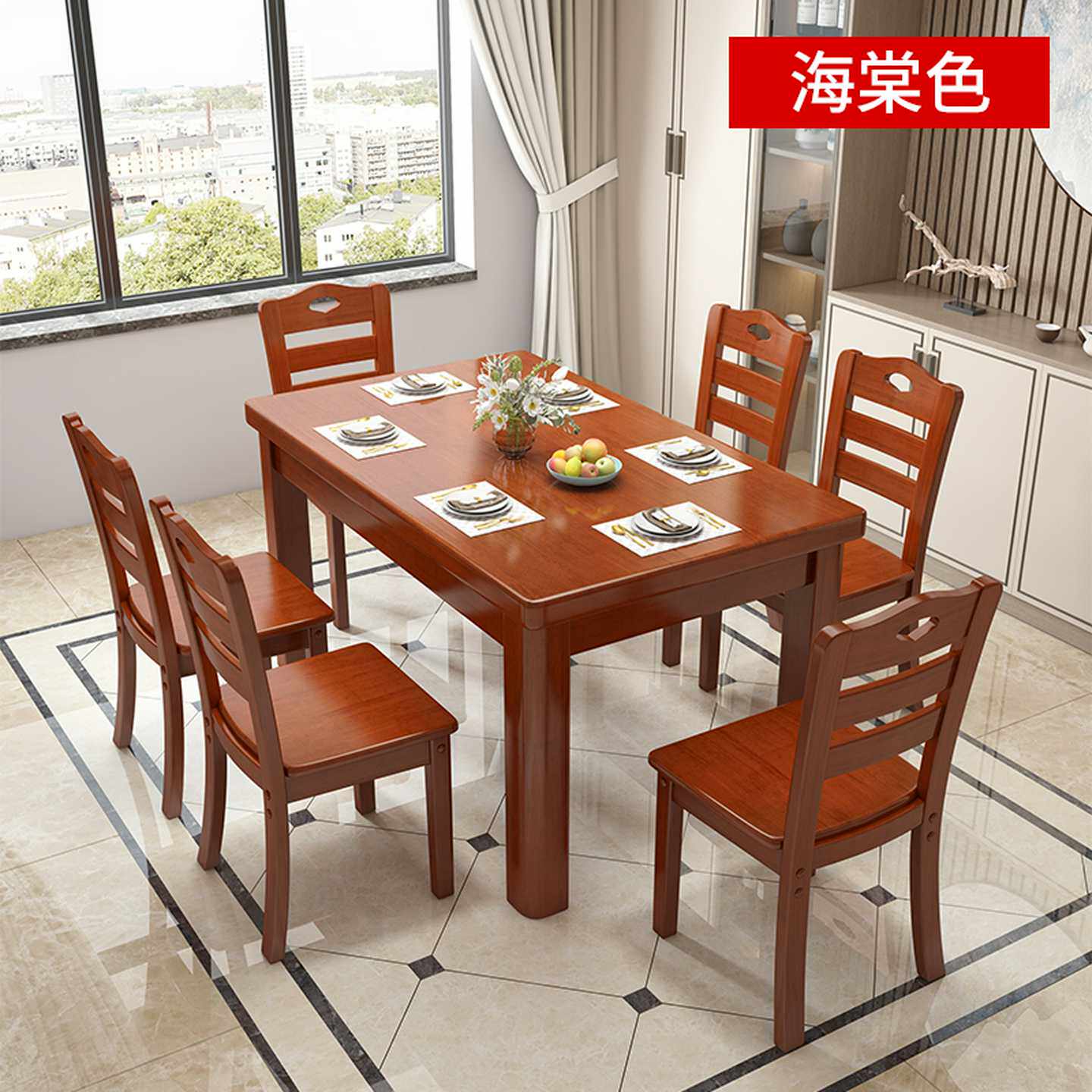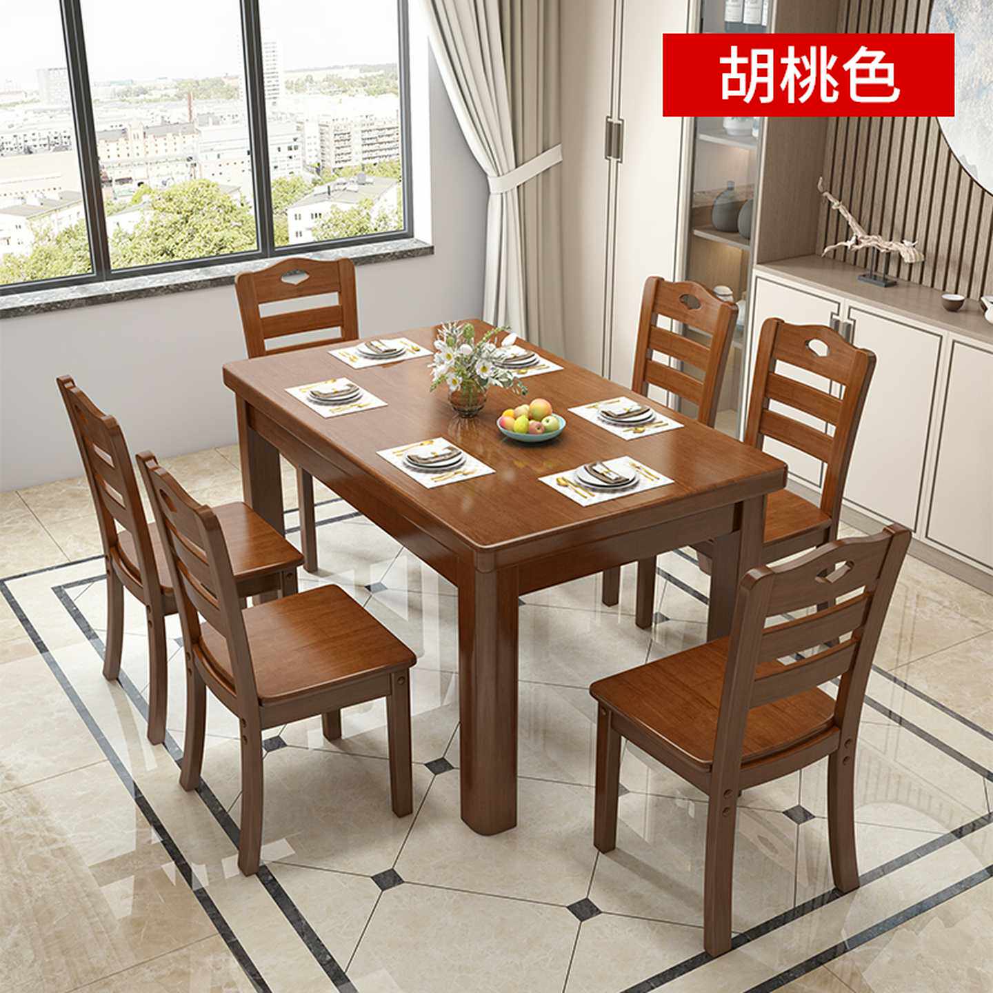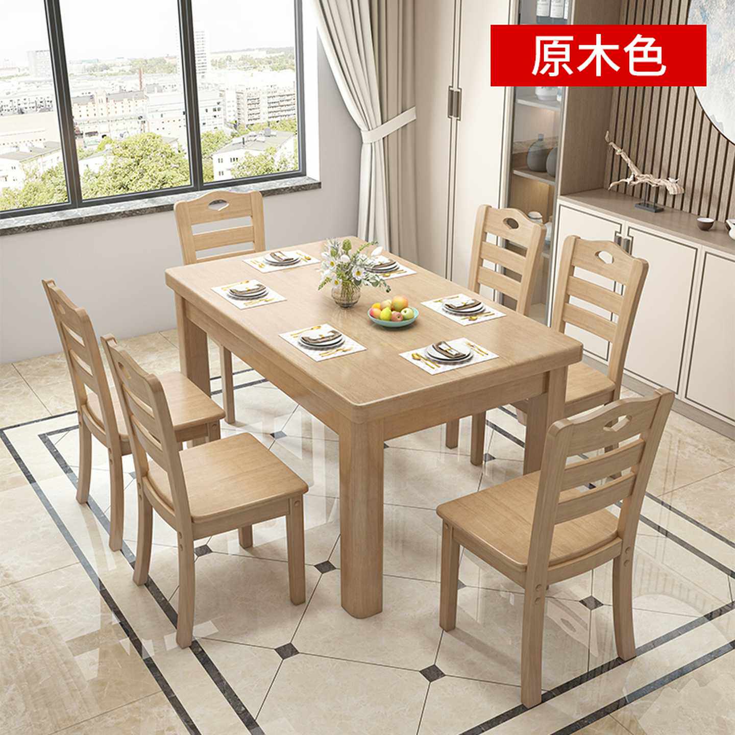 实木餐桌椅组合现代简约长方形方桌中小户型家用四人方型吃饭