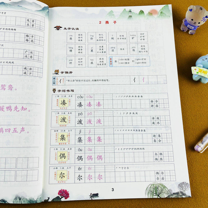 三年级下册语文同步练字帖人教版部编版课本生字认读字词书写拓展听写默写训练带笔顺组词造句小学生3年级下学期写字课课练
