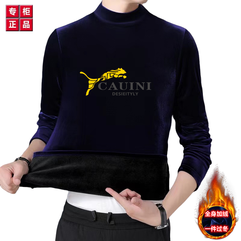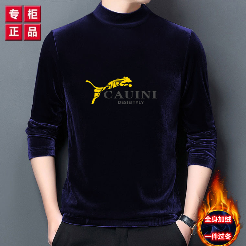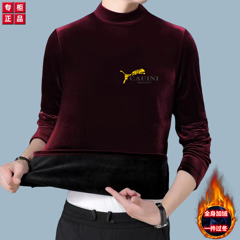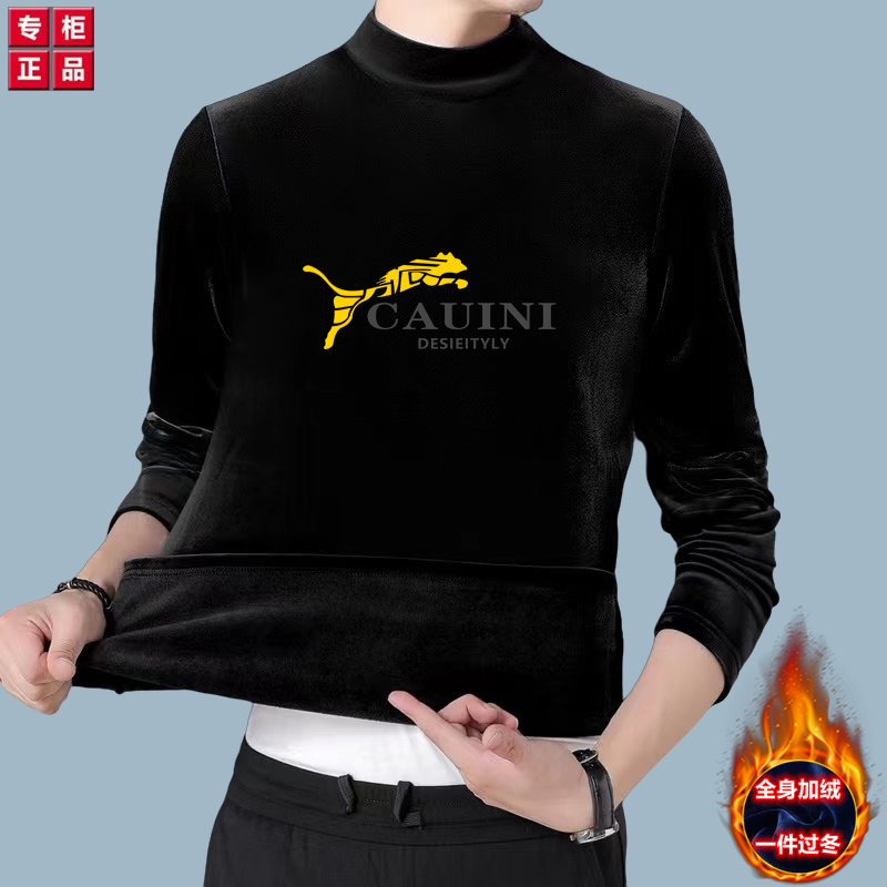 金丝绒卫衣 男秋冬季保暖衣加绒加厚印花长袖t恤男士半高领打底衫