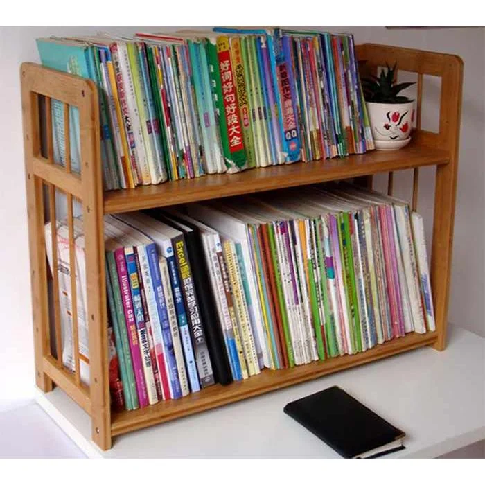 简约两层桌面书架置物架学生简书桌上书柜易架竹多层小型书架爆款