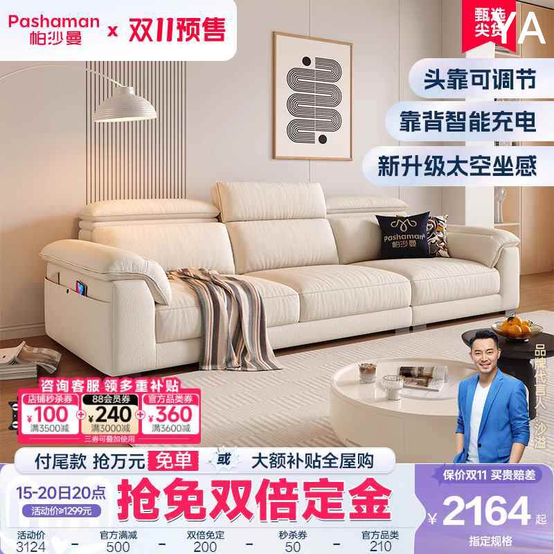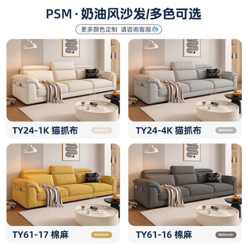 帕沙曼布艺沙发棉麻高靠背客厅小户型现代简约可调节猫抓布奶新款