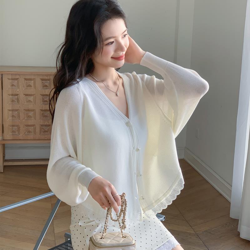 夏季外搭开衫防晒衫冰丝薄款蝙蝠袖针织衫女高级感宽松配吊带裙子