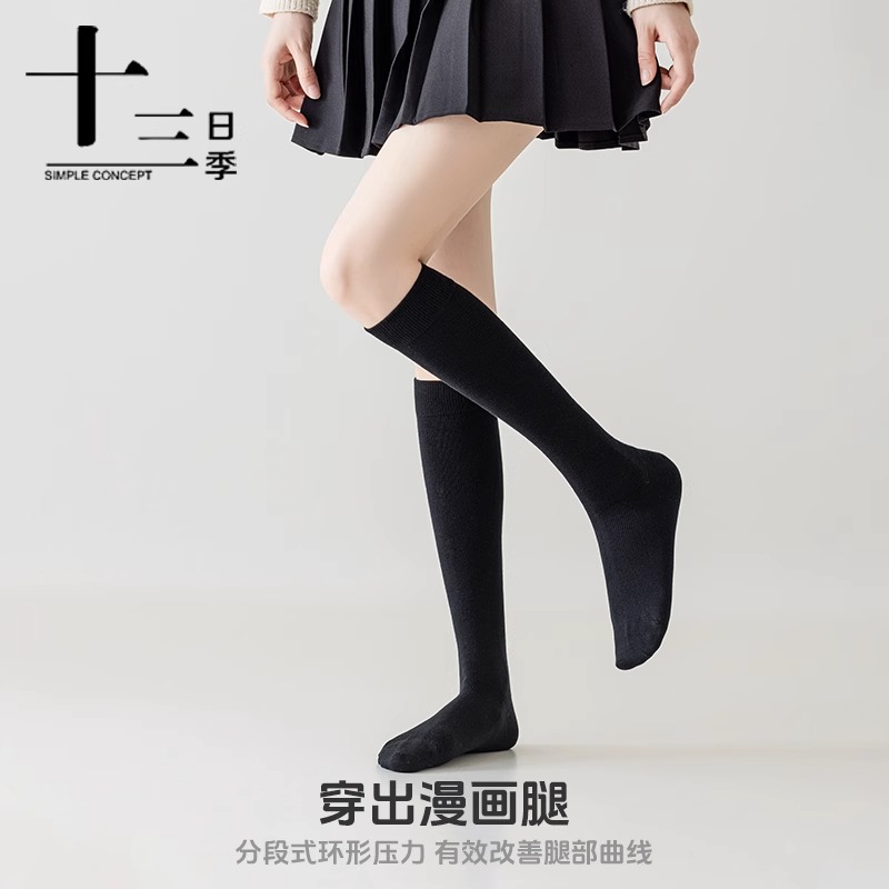 十三日季女士小腿袜春秋季压力袜高棉抑菌运动防臭jk过膝中长筒袜