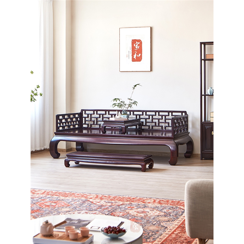 罗汉牀新中式实木小户型坐垫三件套古家俱客厅血檀沙发牀榻组合
