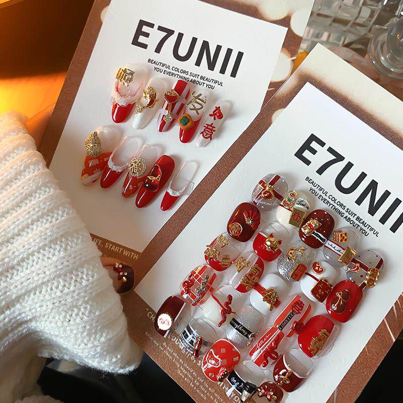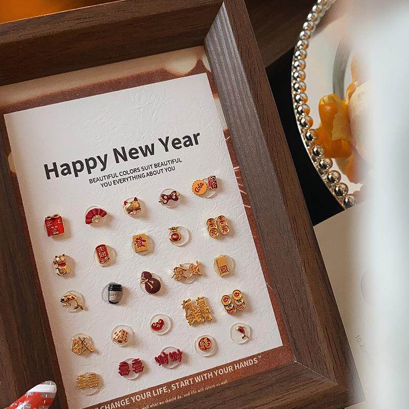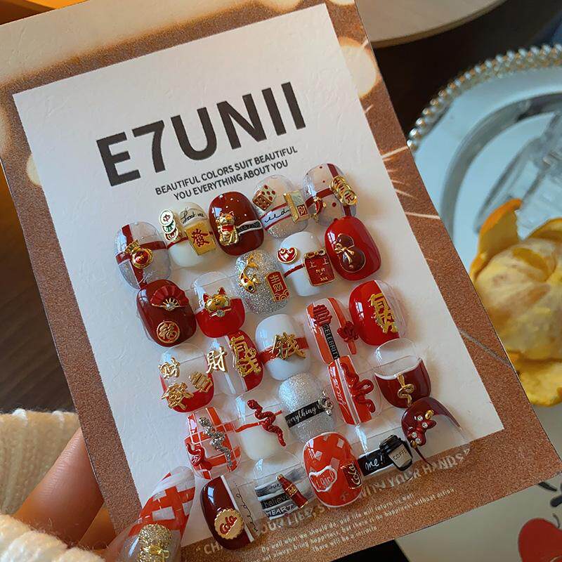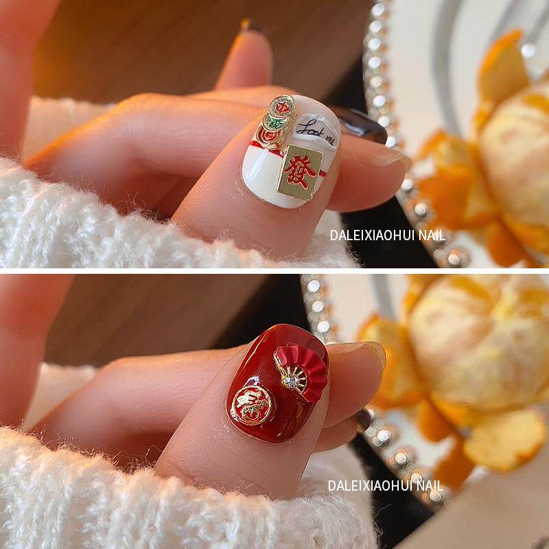 美甲新年饰品秋冬红色爆款镶钻喜庆发财有钱转运福字金属指甲配饰