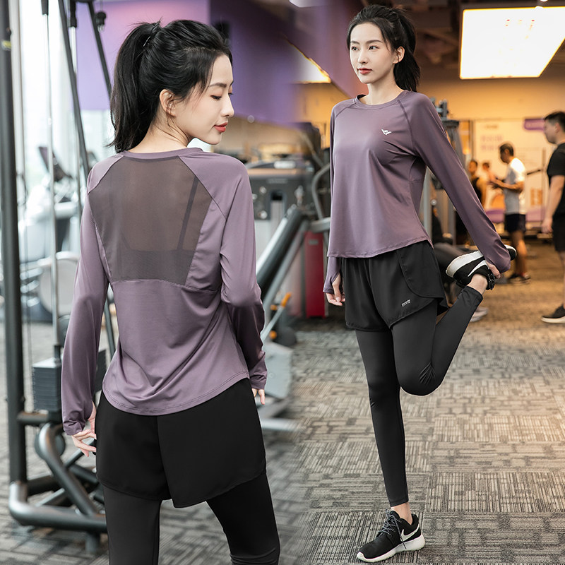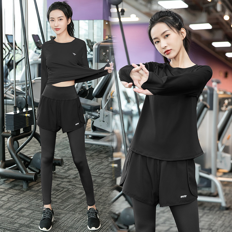 秋冬显瘦大码长袖专业女跑步专用套装速干运动晨跑健身瑜伽服1190