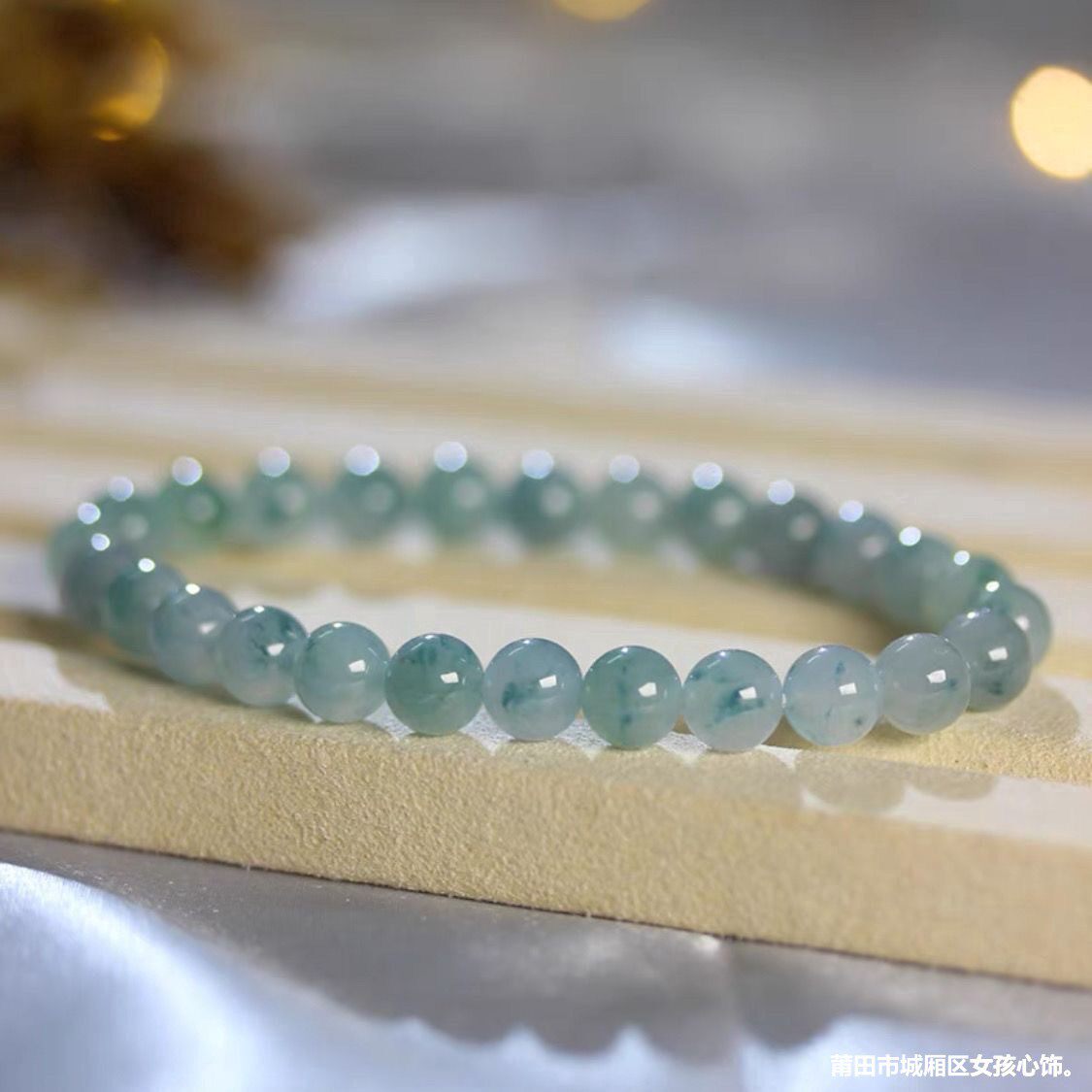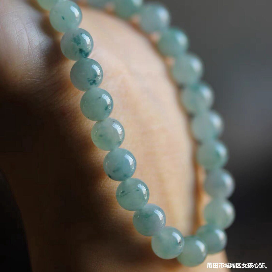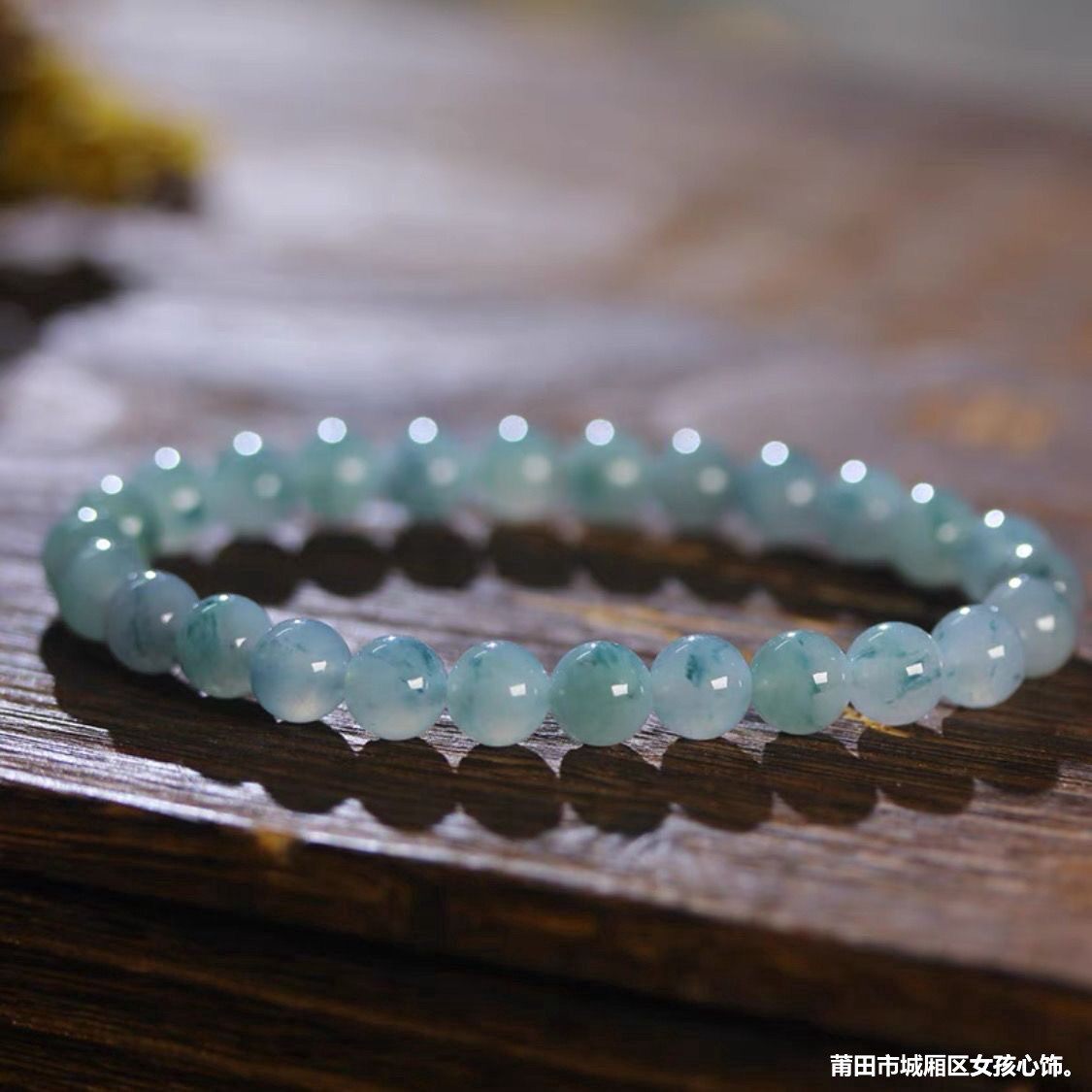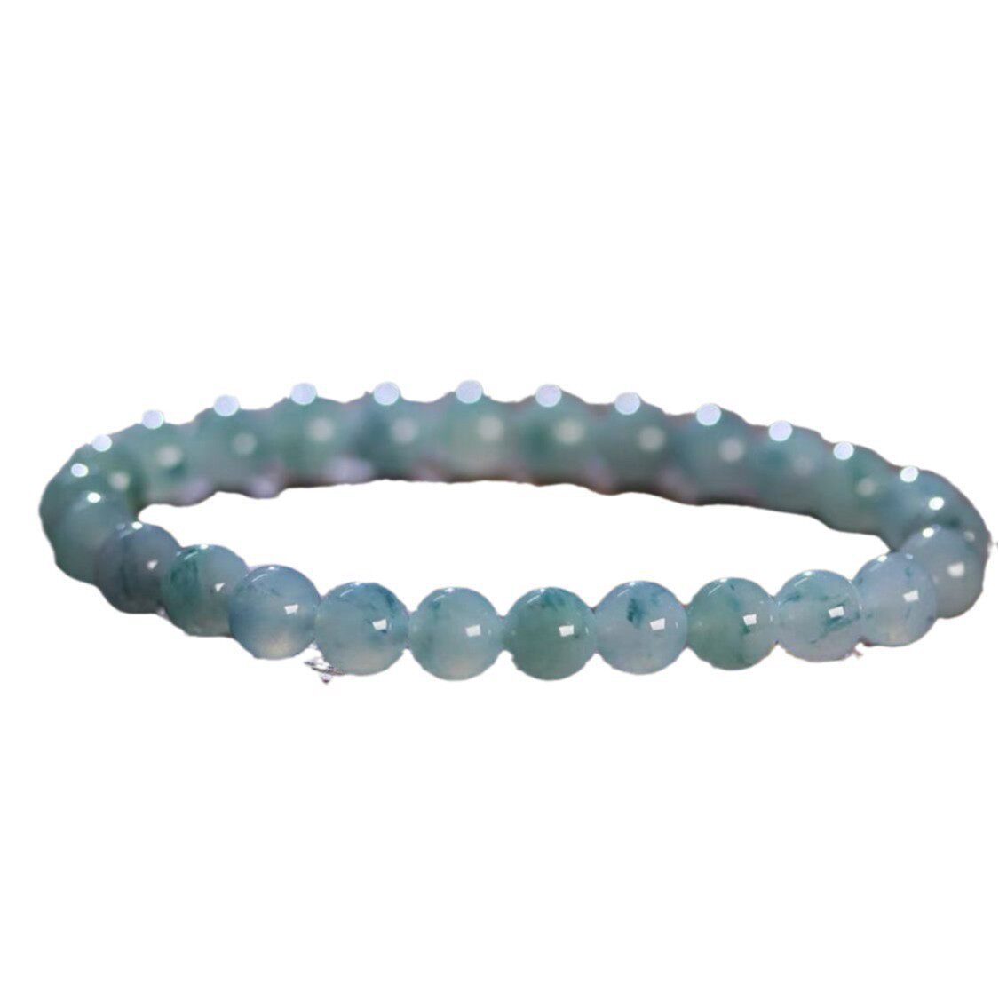 天然缅甸老坑翡翠飘花手串男女款飘蓝花玉珠单圈手链散珠玉石