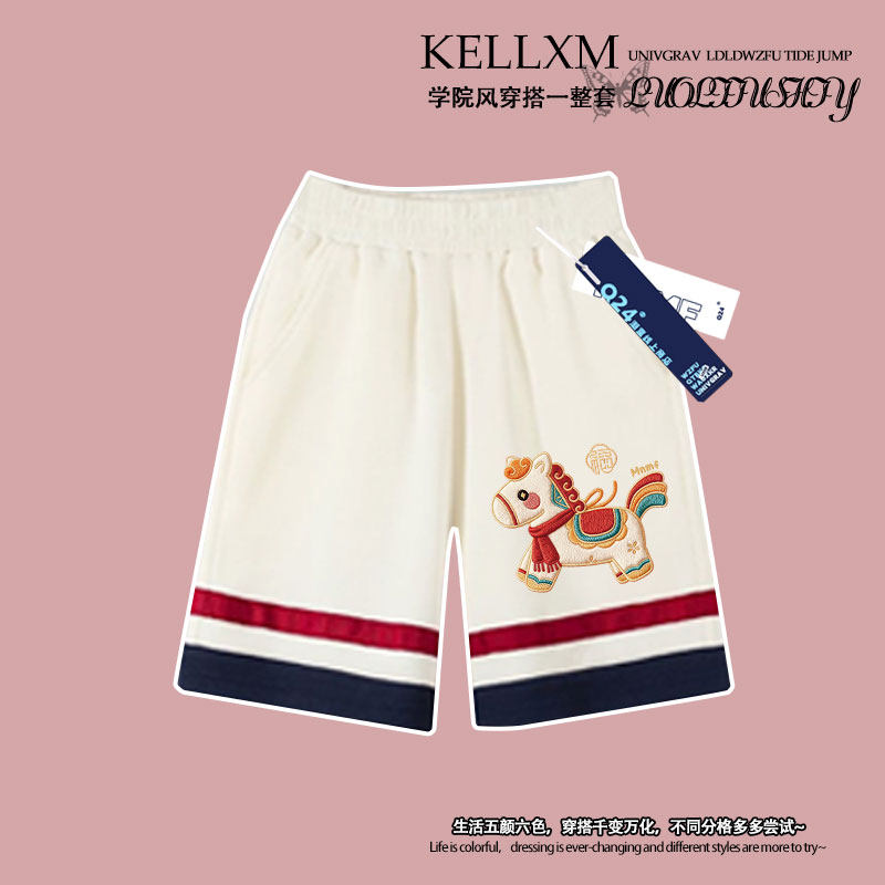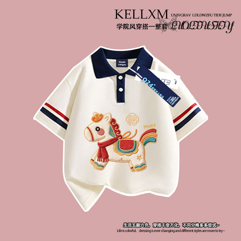 男女童2026夏季马年卡通小马仿刺绣Polo衫t恤短袖短裤套装学生潮