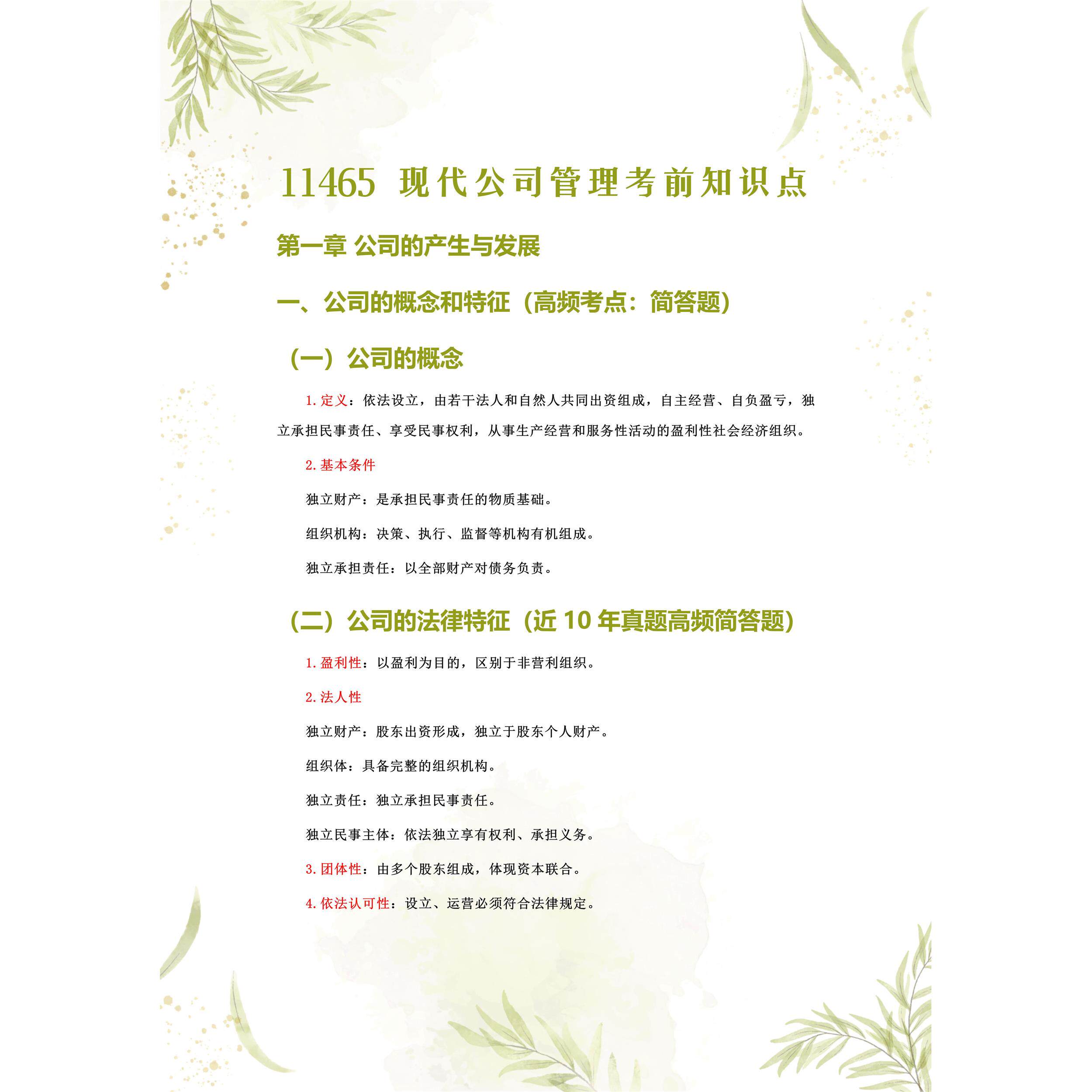 考点重点11465现代公司管理 考纲讲解自考笔记 资料 自考复习过关思维导图 精讲视频网课 考前押题资料