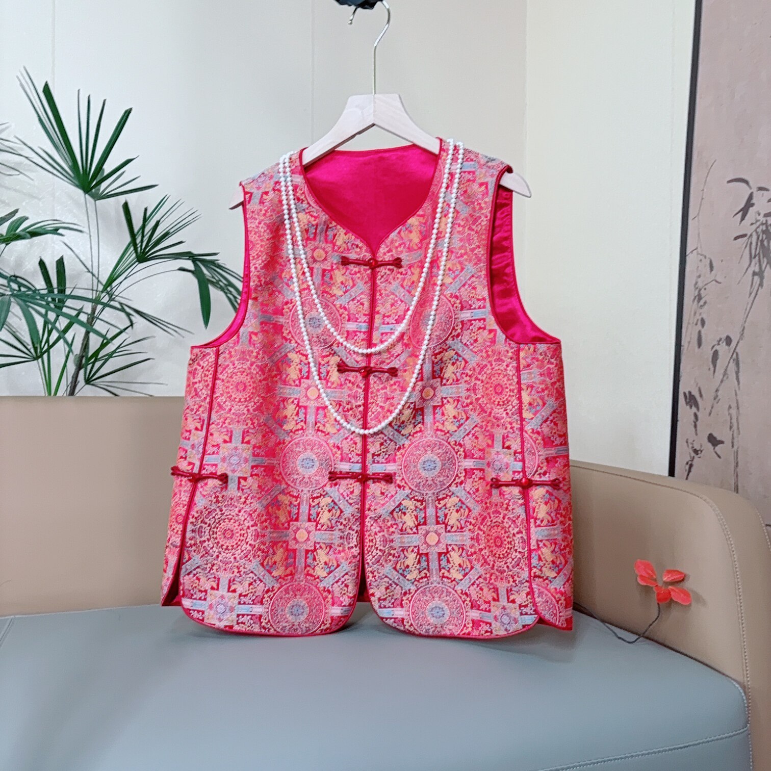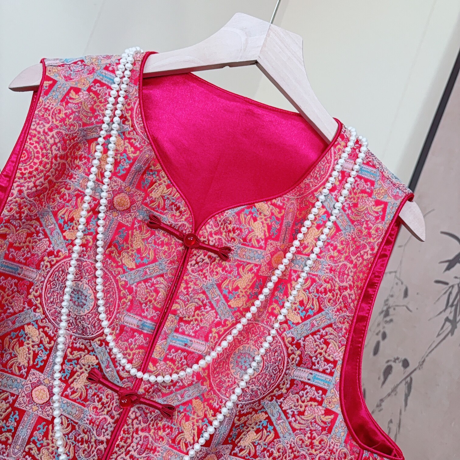 【红八达运】2026春季新款新中式女装时尚圆领无袖盘扣百搭马甲